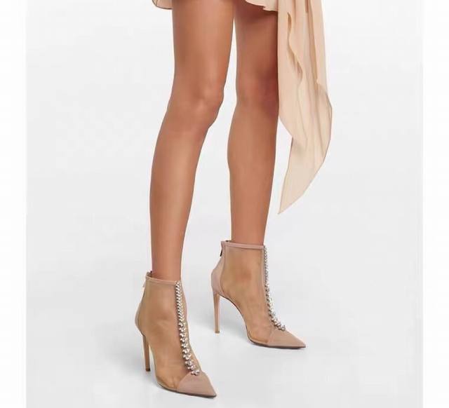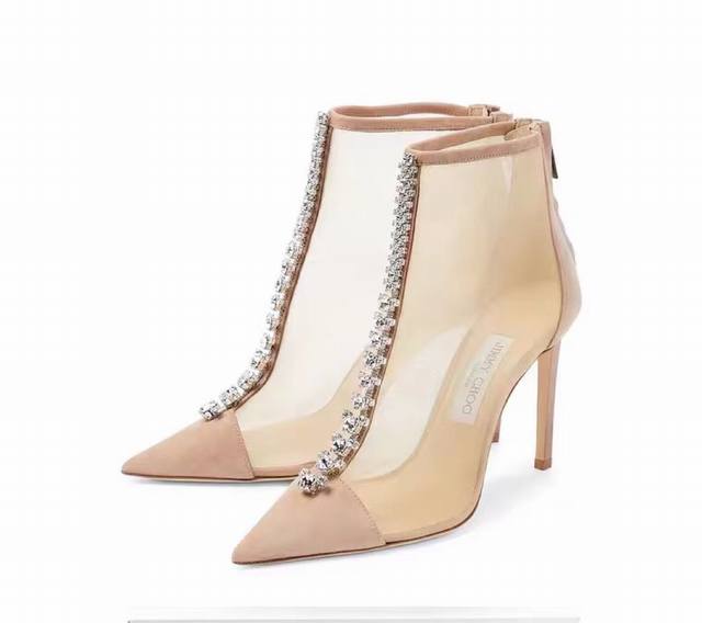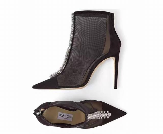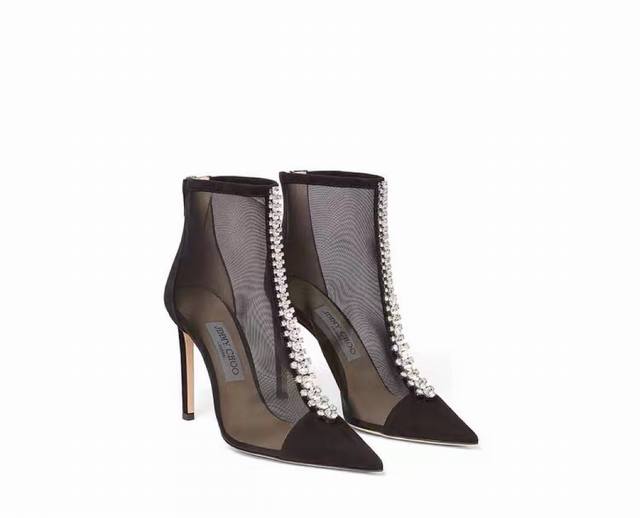 Jimmy Choo Fall/Winter Lace Rhinestone High-Heeled Boots. A must-have item for fashionable young women, these Bing Bing JC boots exude confidence and style. Material: 1:1 replica of the original, rhinestone-embellished, insole-covered sheepskin, Italian genuine leather sole, heel height approx. 8.5cm. Sizes: 35