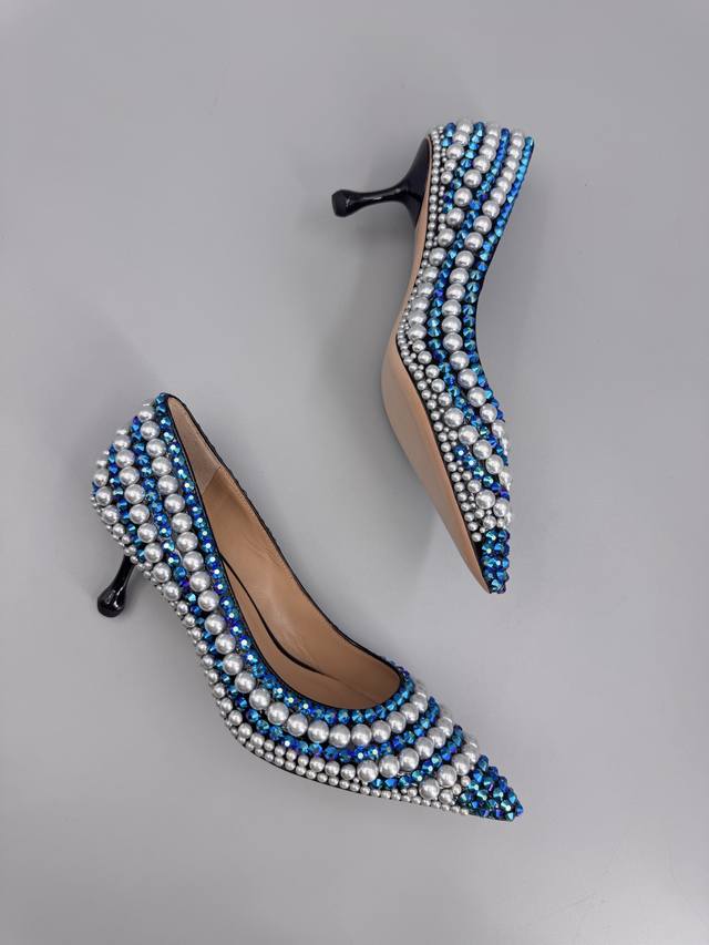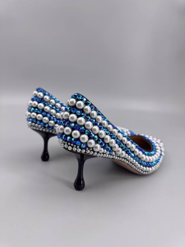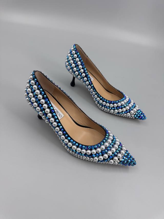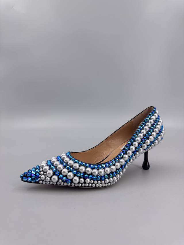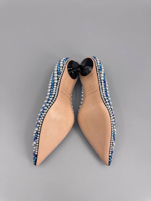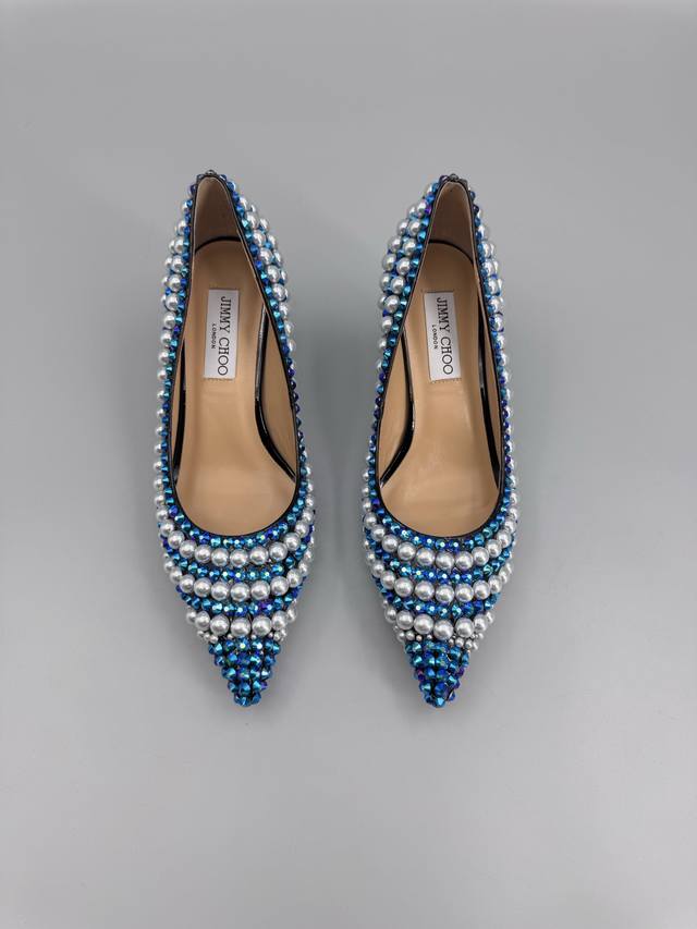 Jimmy Choo Handmade Pearl & Rhinestone Collection. This collection is designed for extraordinary, free-spirited women, creating a unique overall effect. Jimmy Choo designs products that inspire women to move forward with confidence and showcase their charm. 1. Fabric: Imported lambskin, handmade with rhinestones and pearls. 2. Lining: Imported Italian lambskin, super soft and delicate. 3. Outsole: Imported Italian original genuine leather outsole, 6.5cm heel height. 4. Sizes: 35-39, 34, 40, 41, 42. Custom sizes available.
