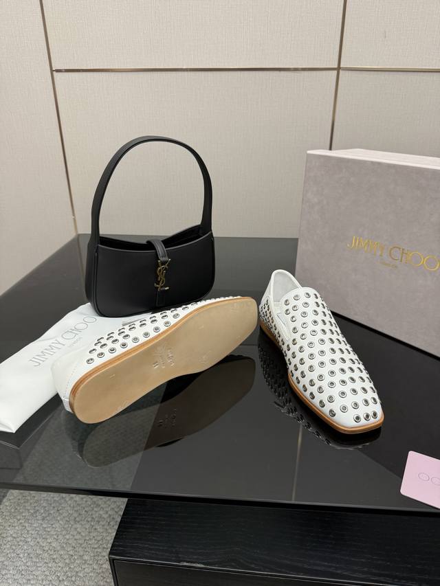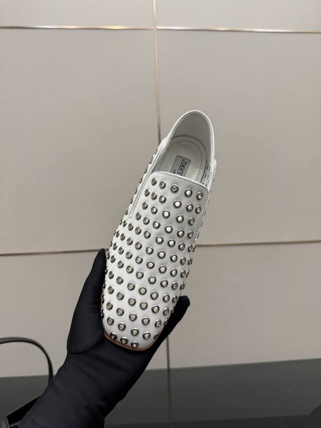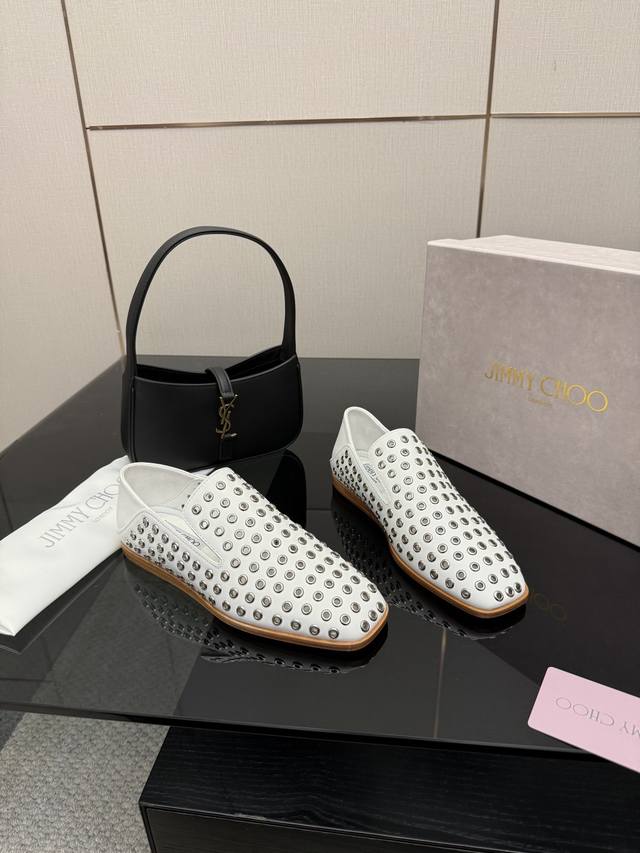 Jimmy Choo loafers, exclusive release. The unique studded design, crafted with the latest technology, creates a strong three-dimensional effect. Multiple techniques are combined to create a revolutionary and incredibly stylish look! Looks amazing with any outfit. A 1:1 replica of the original . Versatile and trendy, suitable for both casual and sweet styles! Size: 35-40. Outsole: Genuine leather.