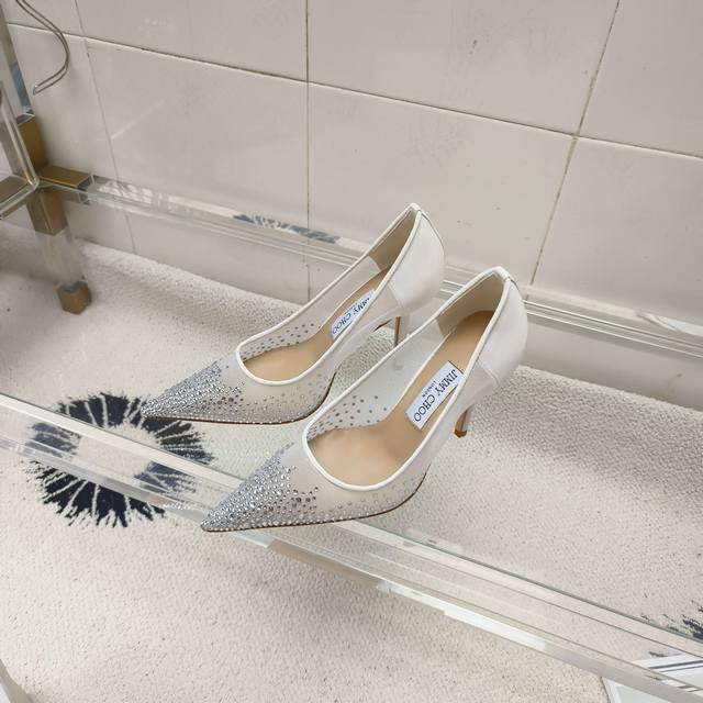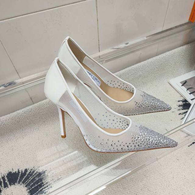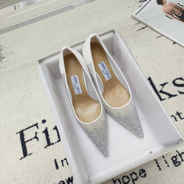 Jimmy Choo Mesh Rhinestone Pointed-Toe Shoes - Top-Quality Item! The crystal embellishments are dazzling and captivating. We purchase the original model and create a mold to perfectly match the original in terms of materials and craftsmanship. During the last adjustment process, we meticulously refine the pattern every time the last is modified until it's identical to the sample shoe