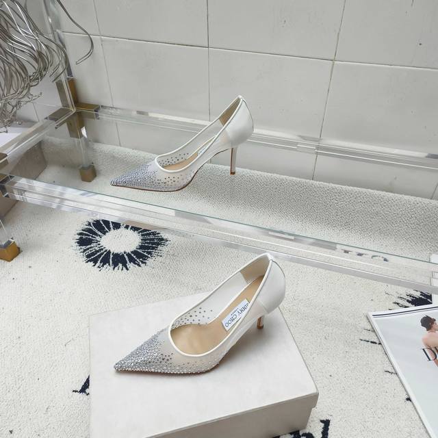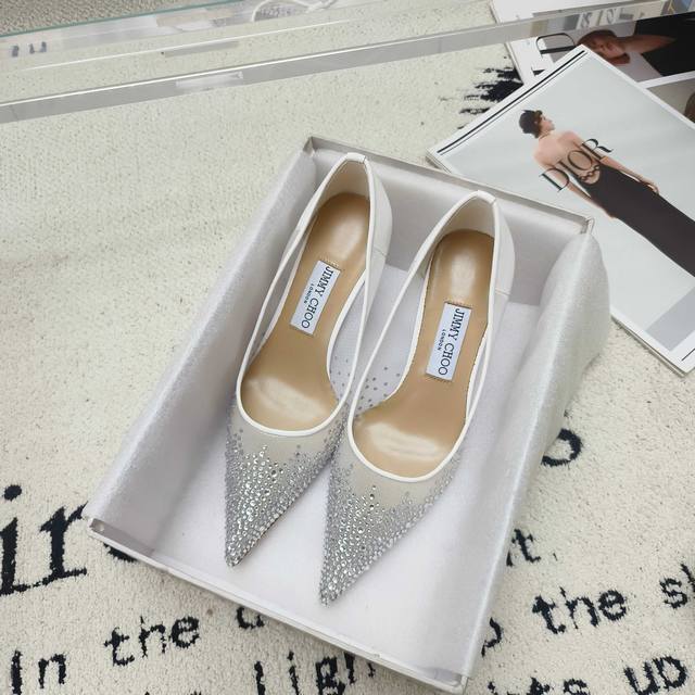 Jimmy Choo Mesh Rhinestone Pointed-Toe Shoes - Top-Quality Item! The crystal embellishments are dazzling and captivating. We purchase the original model and create a mold to perfectly match the original in terms of materials and craftsmanship. During the last adjustment process, we meticulously refine the pattern every time the last is modified until it's identical to the sample shoe
