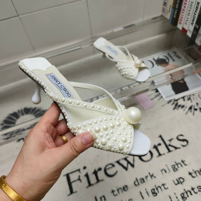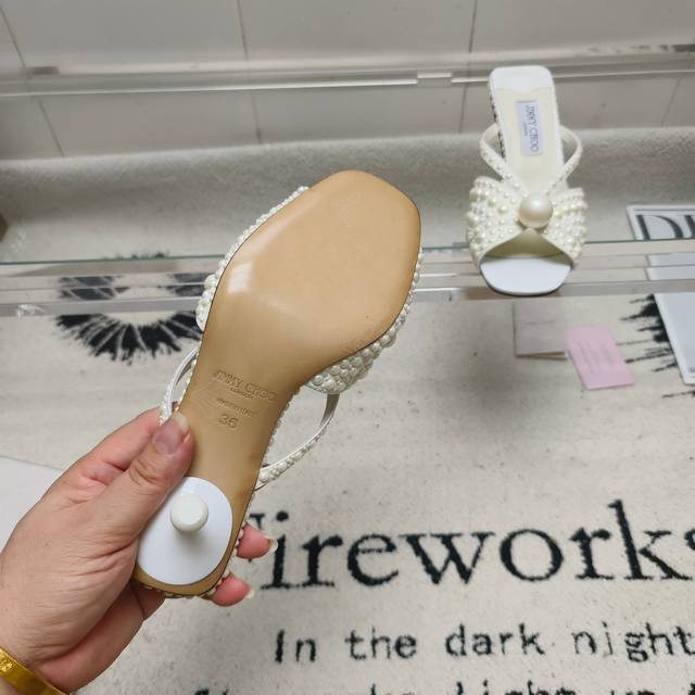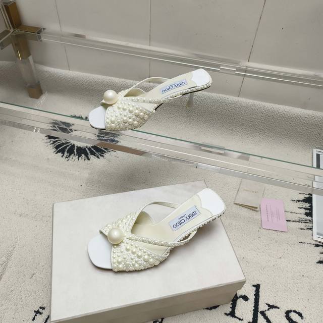 Jimmy Choo Siva Mule series mules, shimmering satin material covered with pearls, sparkling and eye-catching. The open-toe silhouette paired with a soft, three-dimensional heel creates a graceful and harmonious look. A large, luxurious pearl adorns the upper, adding a striking highlight. This exquisite shoe design is perfect for creating moments of understated elegance, making it a luxurious choice for various important occasions. Upper: Imported silk + high-temperature pearl embossing Lining: Imported lambskin Outsole: Italian imported genuine leather Sizes: 35-39, 34, 40-42 (made to order, no returns or exchanges) Heel height: 5.5cm