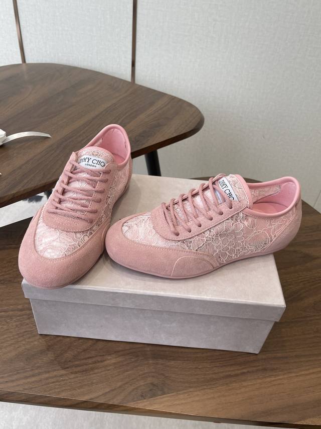 Jimmy Choo Sunny F Series Lace Casual Shoes/Sneakers The Sunny F series casual shoes offer a fresh interpretation of the classic low-top silhouette. Crafted from select custom floral lace fabric, they feature soft leather overlays for added durability. The rubber sole paired with a composite insole provides comfort and lightness. The slim design offers a smooth, supportive fit and cushioning. Each shoe features a Jimmy Choo brand tag on the outer tongue, showcasing a stylish and individual charm. Comes with exquisite boutique packaging. Material: Original custom imported top-grain cowhide + lace. Lining: Custom imported breathable mesh. Sole: Original molded non-slip rubber material. Sole thickness: 2cm. Size: Women's 35-40.