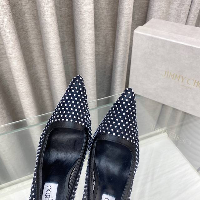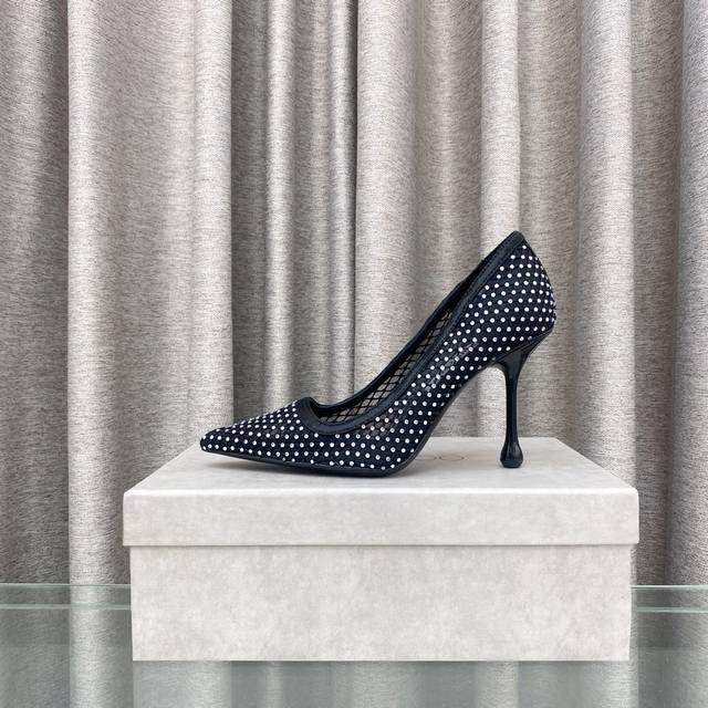 Jimmy Choo's 2025 Ixia80 crystal-embellished mesh and satin pumps are here! The classic high-heeled silhouette features this year's trending teardrop heel and square satin collar. The Bingbing Swarovski rhinestones exude captivating charm. The elegant and sexy signature lacquered teardrop heel is a staple on the runway for bloggers!