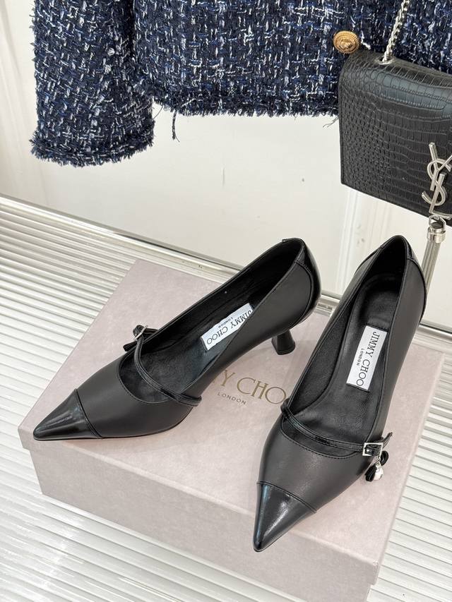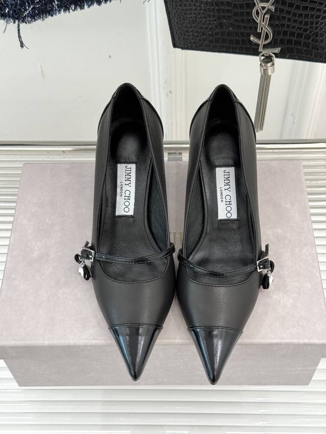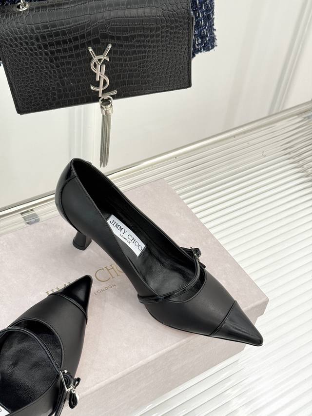 Jimmy Choo's new 25Fw pointed-toe, single-strap, pearl-embellished high heels. Their simple, sharp pointed toe perfectly elongates the leg. Each step exudes boldness and confidence, unleashing your feminine allure. The elegant single-strap stretches across the foot, creating a simple yet sensual silhouette. Like a delicate brushstroke, it adds a captivating touch of elegance. The pearl pendants shimmer in the light, reflecting a dazzling array of colors, reminiscent of twinkling stars in the night sky. Each pearl is meticulously selected, evenly sized, and tightly arranged, showcasing unparalleled luxury. Every step creates a dazzling brilliance.