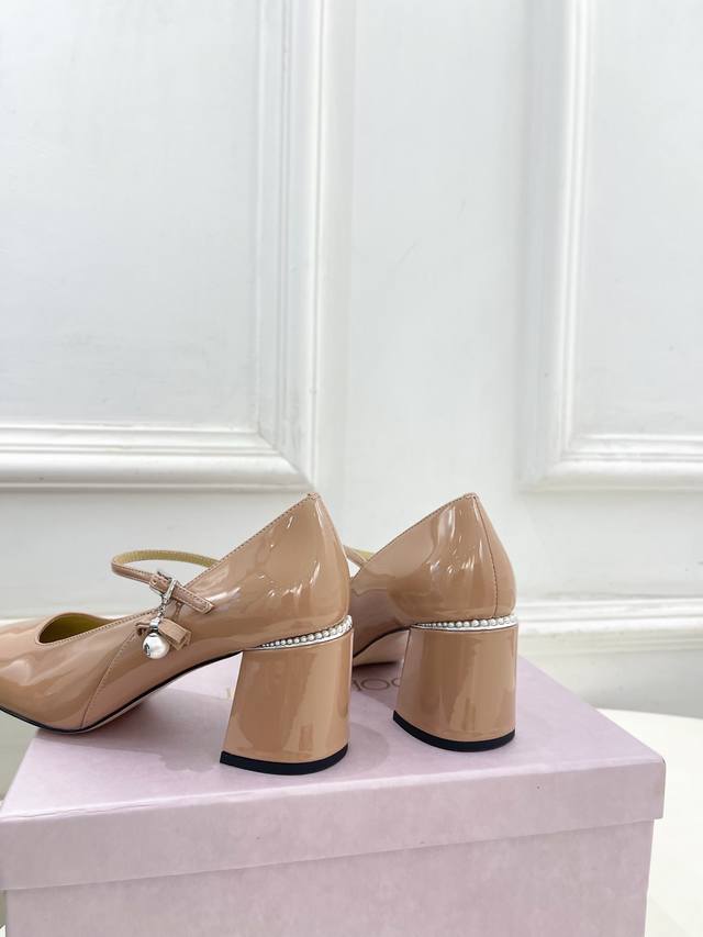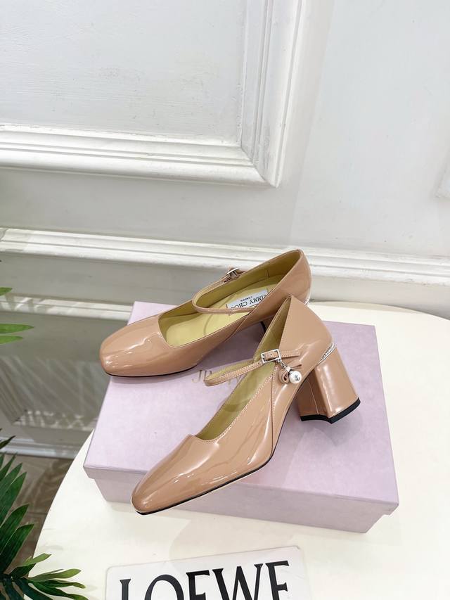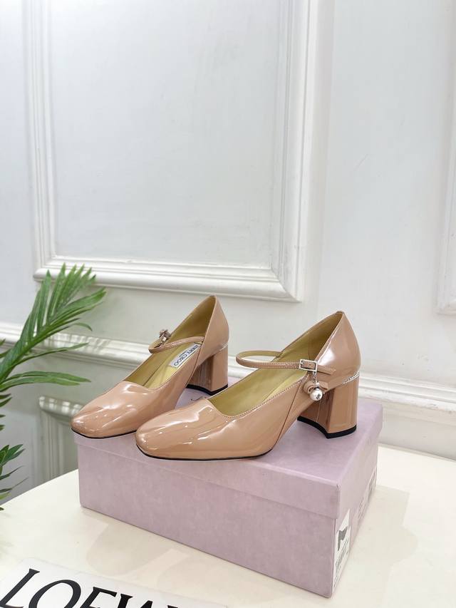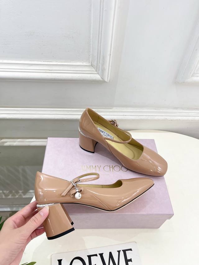 Jimmychoo 25Ss DDD 2025 Autumn/Winter New Arrival - Latest JC Pearl Chunky Heel Mary Jane Shoes. A super comfortable shoe with a sophisticated and elegant style. Timeless and stylish, its charm begins at your feet. Enjoy the envious glances. Pointed-toe heels are quite popular this year, leading the fashion trend again. Versatile and timeless! DDD Upper: Original high-quality custom-made cow patent leather DDD Lining : Imported sheepskin lining DDD Outsole: Original Italian genuine leather outsole DDD Heel height: 6cm DDD Sizes: 35-39, 40, 41. Custom-made, no returns or exchanges DDD Factory price (pp.): DDD