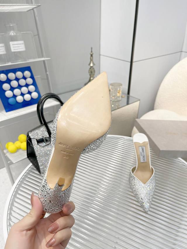 Jimmychoo's new Goddess Series rhinestone high heels. Adorned by numerous celebrities and bloggers both domestically and internationally, this series is a must-have for any fashionista. Upper: Imported rhinestone upper. Lining: Imported crystal sheepskin. Outsole: Imported Italian genuine leather. Sizes: 35-39, 34, 40-42. Custom orders are non-refundable and non-exchangeable. Heel height: 8.5-10cm.