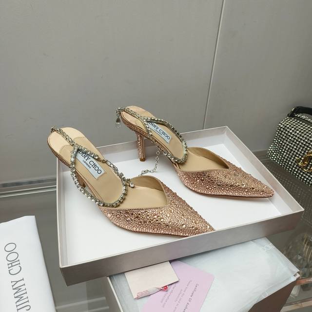 Jimmychoo's new Goddess Series rhinestone high heels. Featured by numerous celebrities and bloggers both domestically and internationally, this series is a must-have for any fashionista. Upper: Imported rhinestone upper. Lining: Imported crystal sheepskin. Outsole: Imported Italian genuine leather. Sizes: 35-39, 34, 40-42. Custom orders are non-refundable. Heel height: 8.5-10cm.