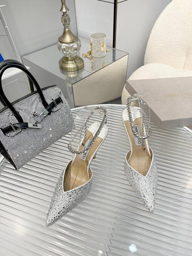 Jimmychoo's new Goddess Series rhinestone high heels. Featured by numerous celebrities and bloggers both domestically and internationally, this series is a must-have for any fashionista. Upper: Imported rhinestone upper. Lining: Imported crystal sheepskin. Outsole: Imported Italian genuine leather. Sizes: 35-39, 34, 40-42. Custom orders are non-refundable. Heel height: 8.5-10cm.