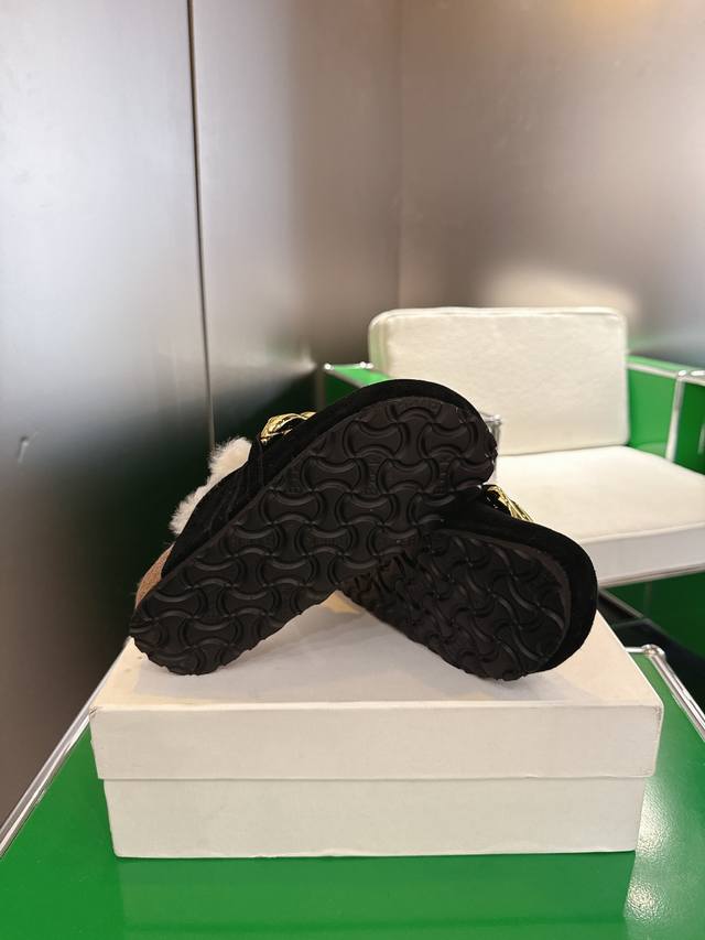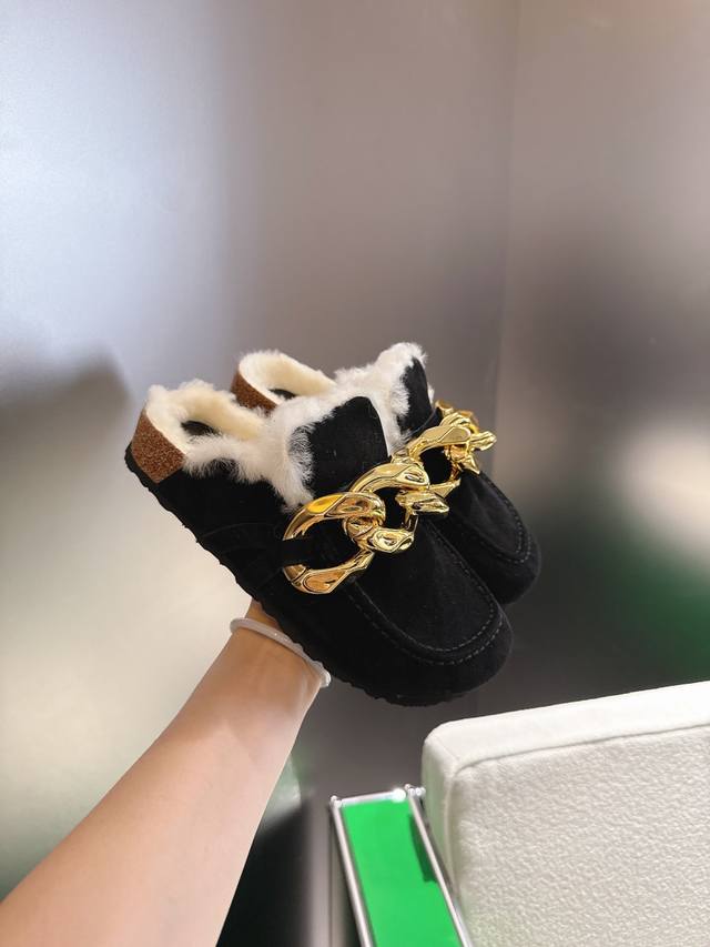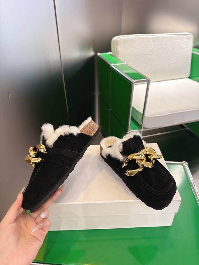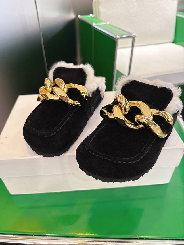 K002 Jw Anderson 25Ss Autumn/Winter New Arrival: Big Gold Chain Fur Slippers