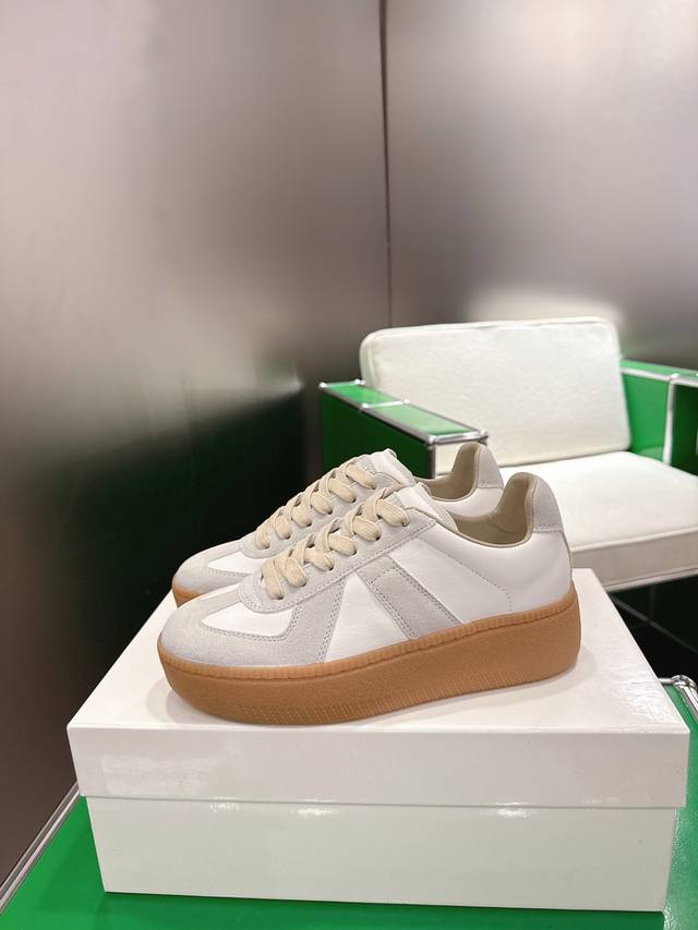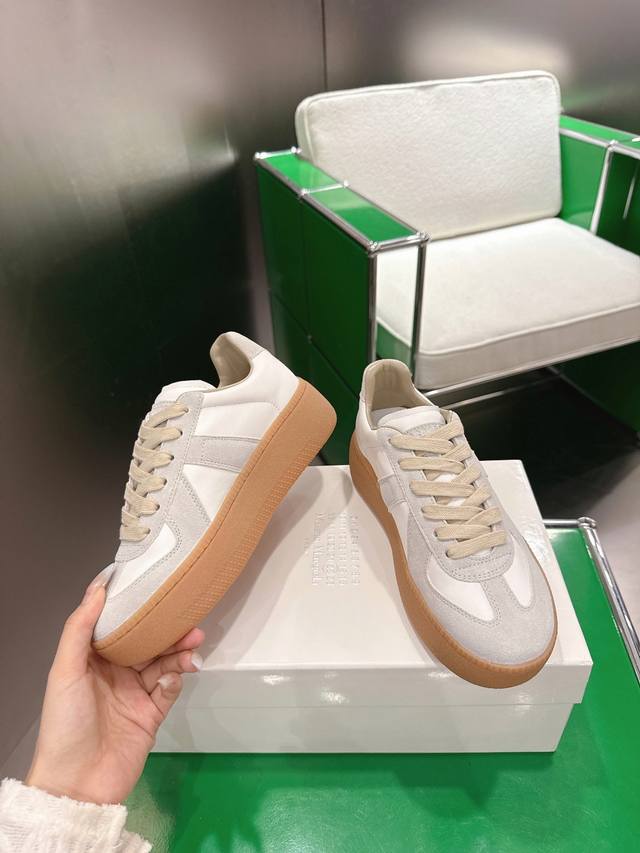K012 Maisonmargiela Thick-Soled German Training Shoes DDD A designer brand, a light luxury brand. This German training shoe continues the classic T-shaped genuine leather splicing design. After multiple careful improvements by the design team, it's designed to let you experience the most original military feel. The special material combines the soft and delicate characteristics of the fabric with the fashionable fabric, giving it both high softness and comfort while maintaining good breathability. Comfort and texture go hand in hand, easily handling all seasons and any outfit. DDD Original custom-made imported cowhide lining, imported soft sheepskin lining, original mold rubber material. DDD Sole thickness 5cm. DDD Sizes: 35-40. Size 40 is custom-made and non-refundable. DDD