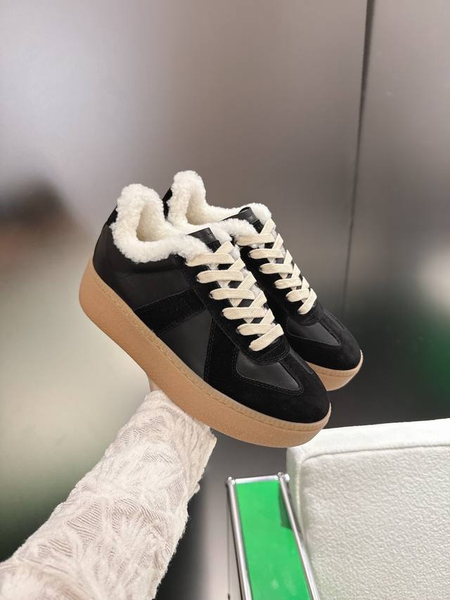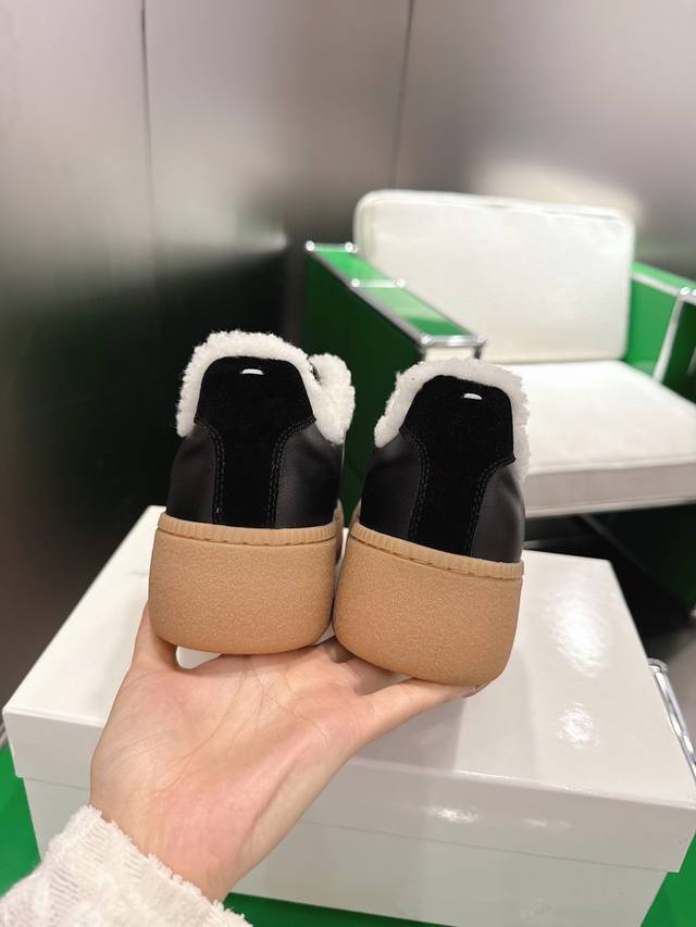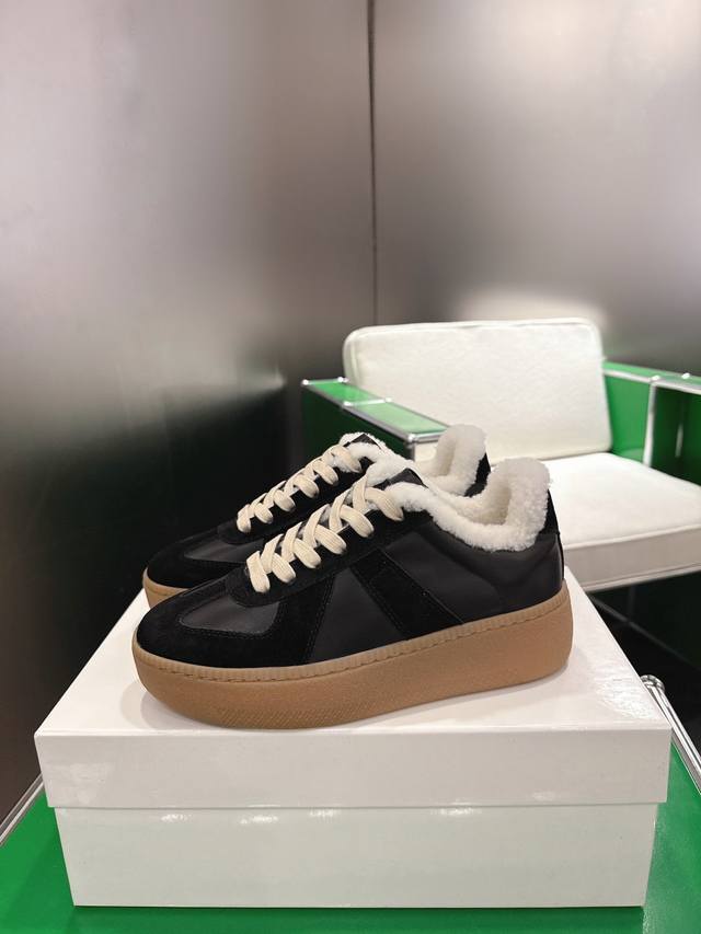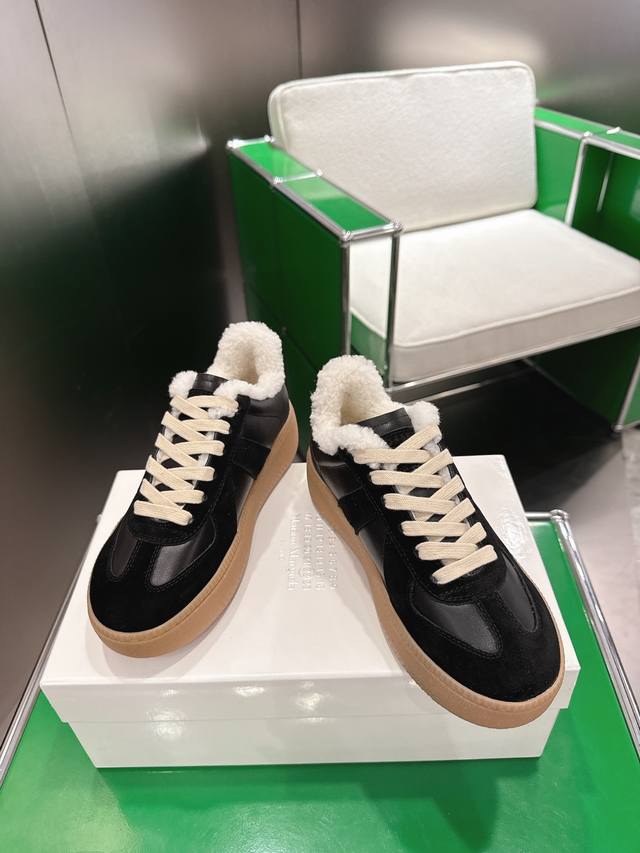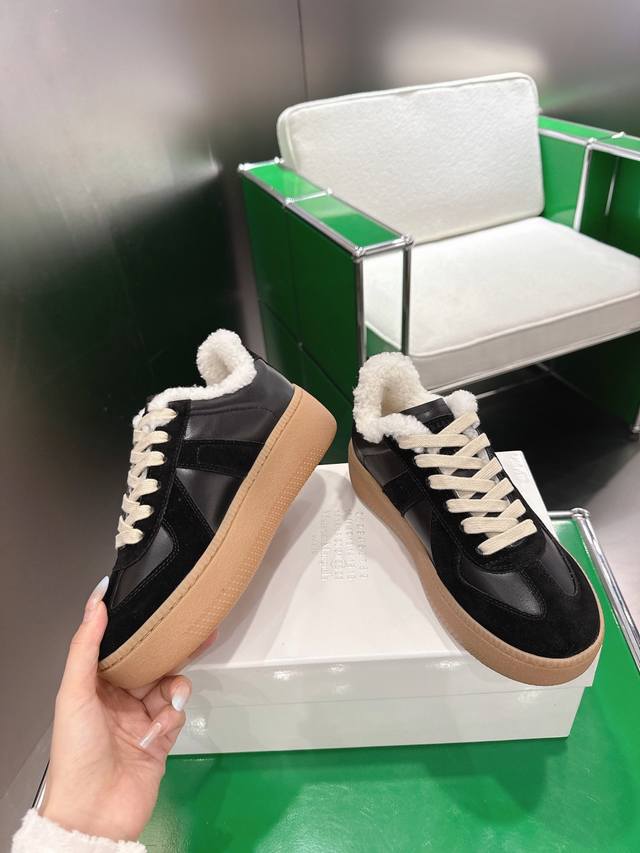 K012 Maisonmargiela Thick-Soled German Training Shoes with Fur Lining DDD Original Purchase, Developed and Produced by a Genius Designer Brand, a Light Luxury Brand. This German training shoe continues the classic T-shaped genuine leather splicing design. After multiple meticulous improvements by the design team, it's designed to let you experience the most authentic military feel. The special material combines the soft and delicate characteristics of the fabric with fashionable and trendy materials, giving it both superior softness and comfort while maintaining good breathability. Comfort and quality go hand in hand, easily handling all seasons and any outfit. DDD Original Custom-Made Imported Cowhide Lining, Imported Soft Sheepskin Lining, Original Mold, Rubber Material DDD Sole Thickness 5cm DDD Sizes: 35-40, Size 40 is custom-made and non-refundable DDD