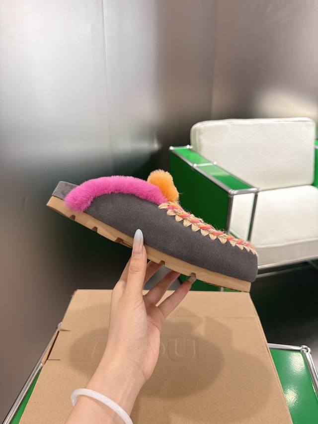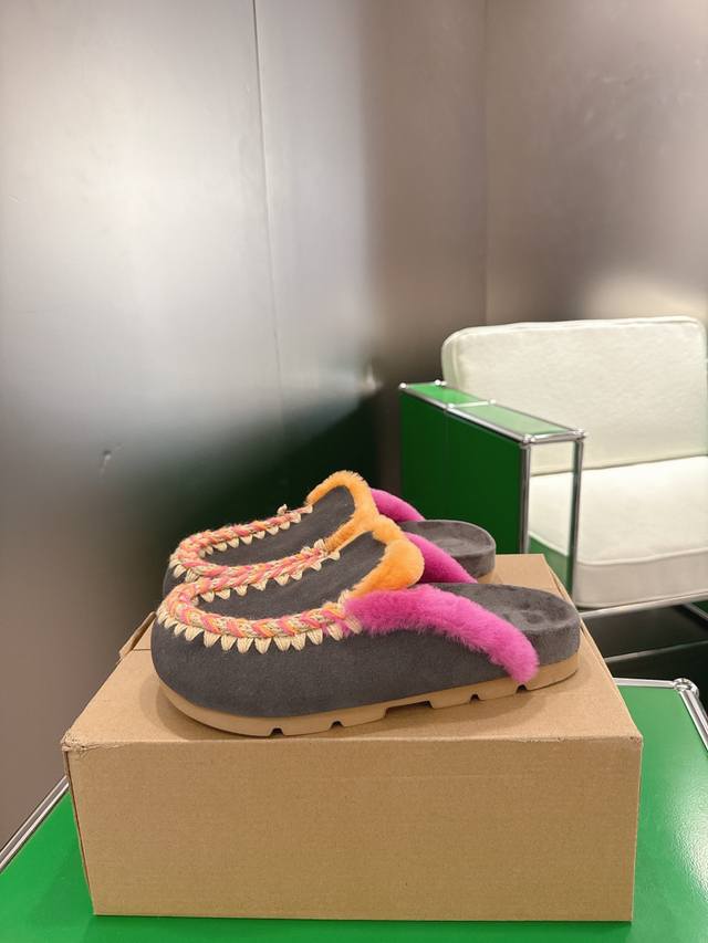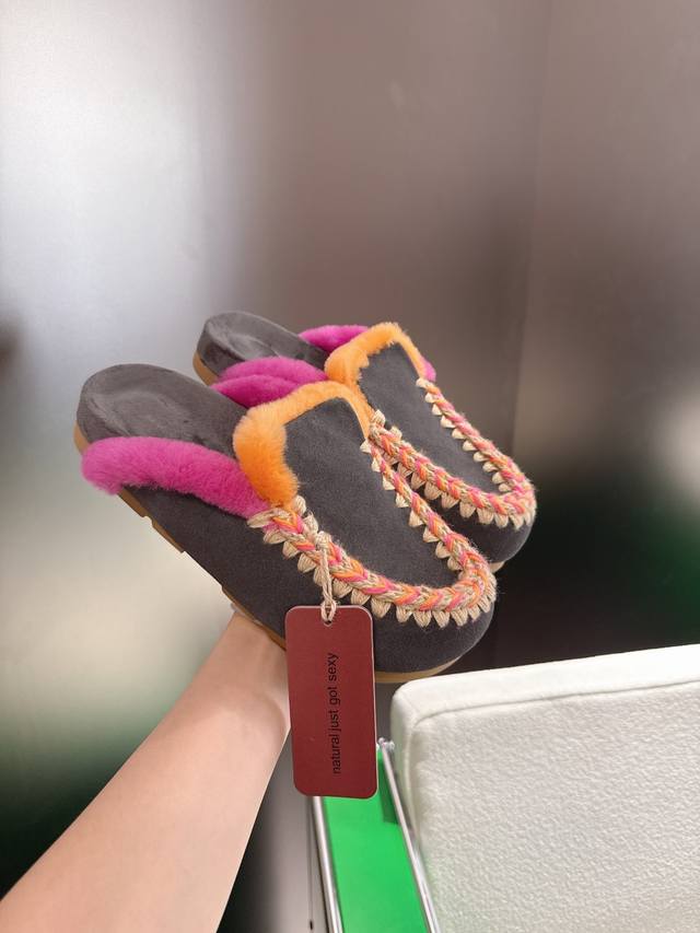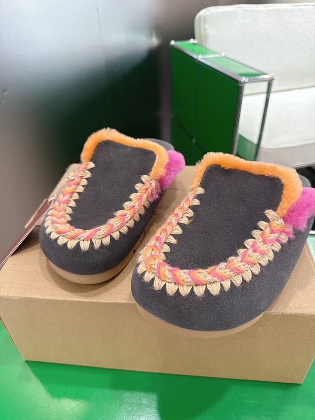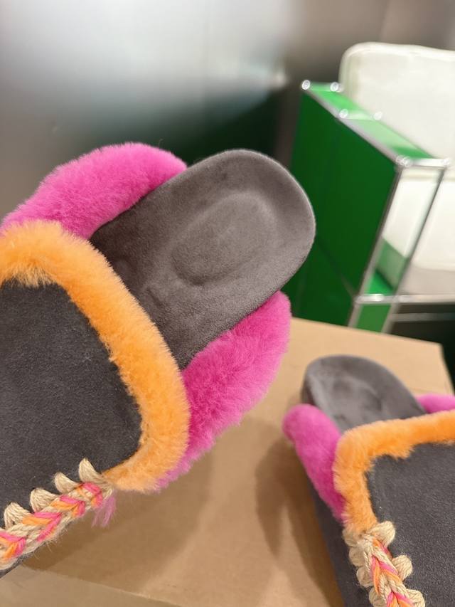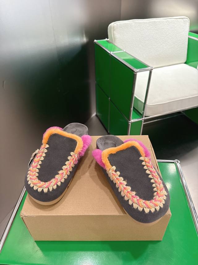 Mou Niche Trendy Brand 25Ss Autumn/Winter New Arrival: Birken Wool Slippers. Comfortable and sophisticated for home wear. A pair of elastic, thick-soled wool slippers that are both cozy and warm. Your feet will feel like they're sinking into a gentle embrace. The soft sheepskin and leather combination makes them perfect for both outings and relaxing at home. Add a touch of romantic charm to winter. Upper: Suede upper with heavy-duty ethnic-style hand-stitched lining. Insole: Wool. Sole: Original soft rubber outsole. Size: 35-39. 40.41 Made to order, no returns or exchanges.