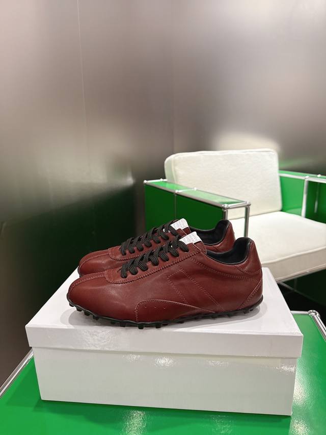 New Sprinters sneakers are crafted from distressed, plant-blend leather, inspired by retro running shoes. Through distressing, stitching, and patchwork techniques, the shoes are given new life and beauty. The tongue features the classic number logo, paired with a non-slip studded sole, and the heel is adorned with the iconic white stitched logo, exuding a sense of craftsmanship.