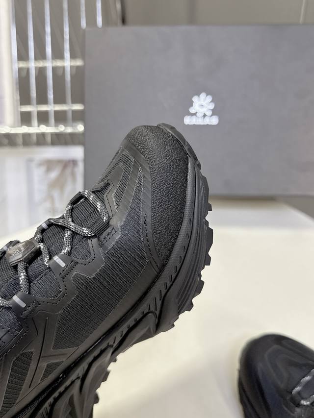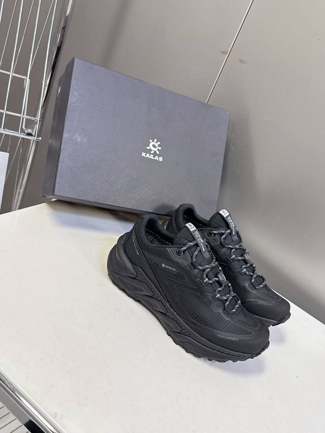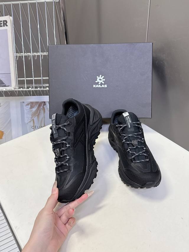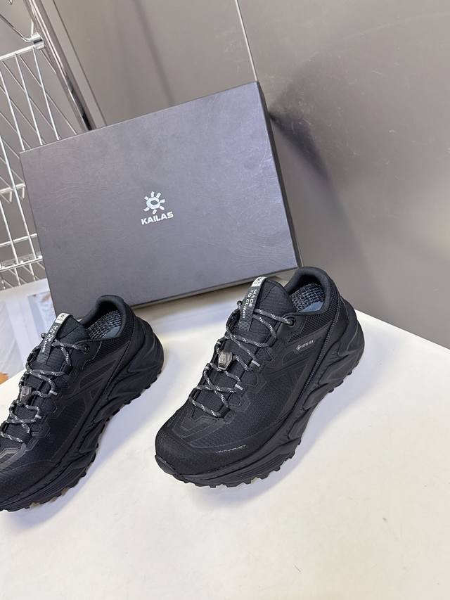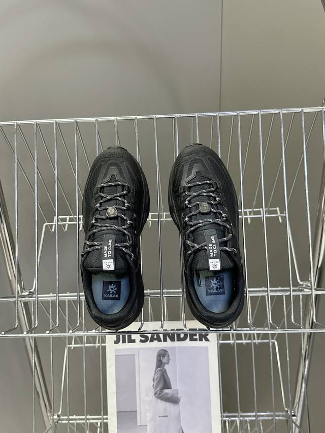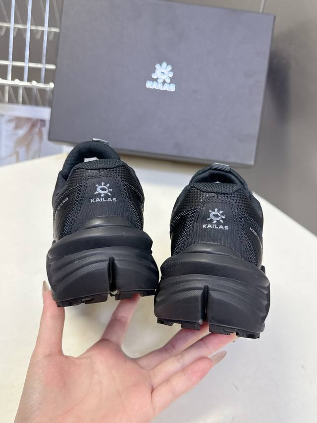 ) feature a design reimagined with sharp mountain ridge lines, and the midsole's contours evoke the undulating contours of a mountain range. The shoe's black, gray, and silver exterior evokes the power of loneliness amidst the surging sand and gravel. The sole features Vibram Megagrip wet-weather grip. The Litebase version offers a lighter feel, making it ideal for trail running. Furthermore, the sole features Kailas' unique triangular serration design, and the 4mm thickness helps runners maintain a firm grip on the ground even on sudden changes in mountain terrain. Suitable for mixed-track trail running, mountain hiking, and other outdoor activities, it handles climbs, descents, and slippery trails, making it a perfect match for both sportswear and casual wear. Sizes: Women's 35-40, 40, custom-made, non-refundable. Men's 39-44 (