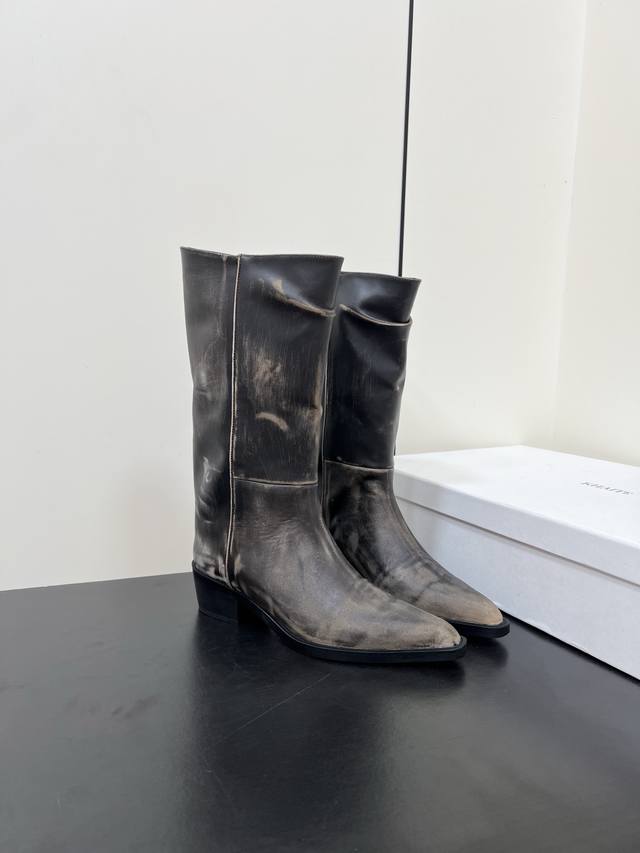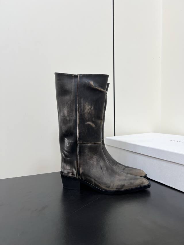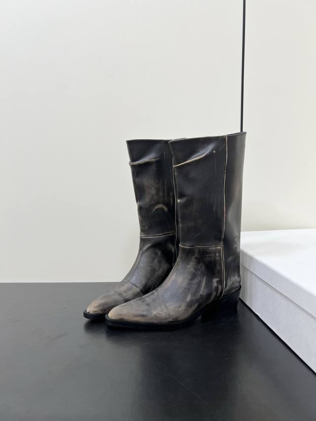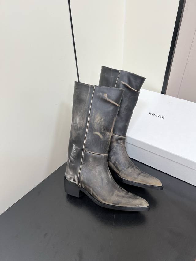 Khaite 2025 Fall/Winter pointed-toe, chunky-heeled, wrinkled western boots
