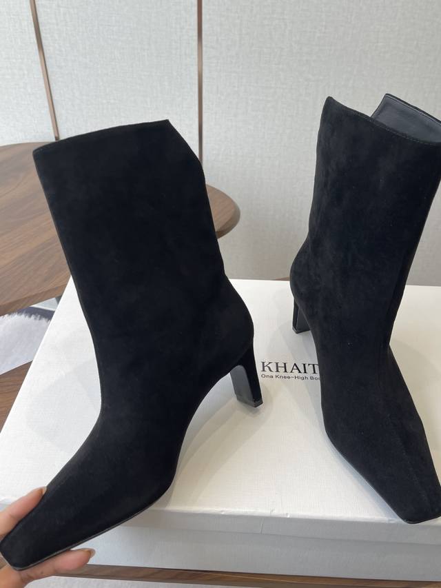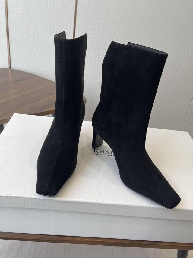 Khaite 25Ss Latest butter leather ankle boots with a small square heel, a versatile style, as seen on Instagram influencers! Top-quality original replica! Super stylish! The simple and elegant design makes it a must-have for winter. The upper is made of imported horse oil leather with super fine workmanship. It's versatile, slimming, and super cool! A must-have for creating a stylish look, easily paired with suits, coats, jeans, and dresses! Upper: Butter leather, sheepskin lining: Sheepskin outsole: Italian genuine leather heel height: 6.5cm Size: 35-41 40 & 41 can be customized, no returns or exchanges.