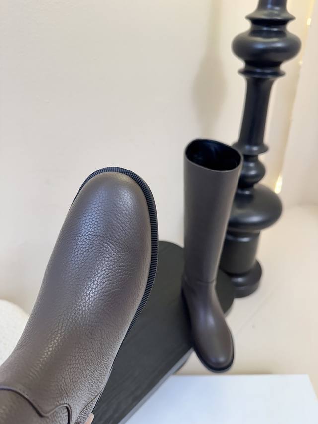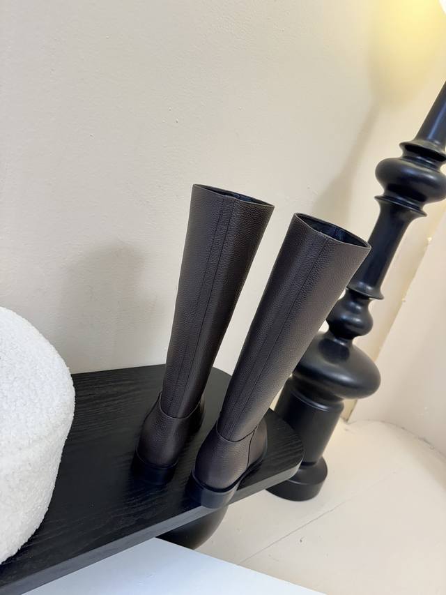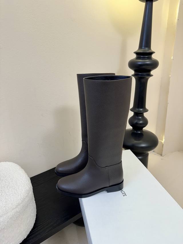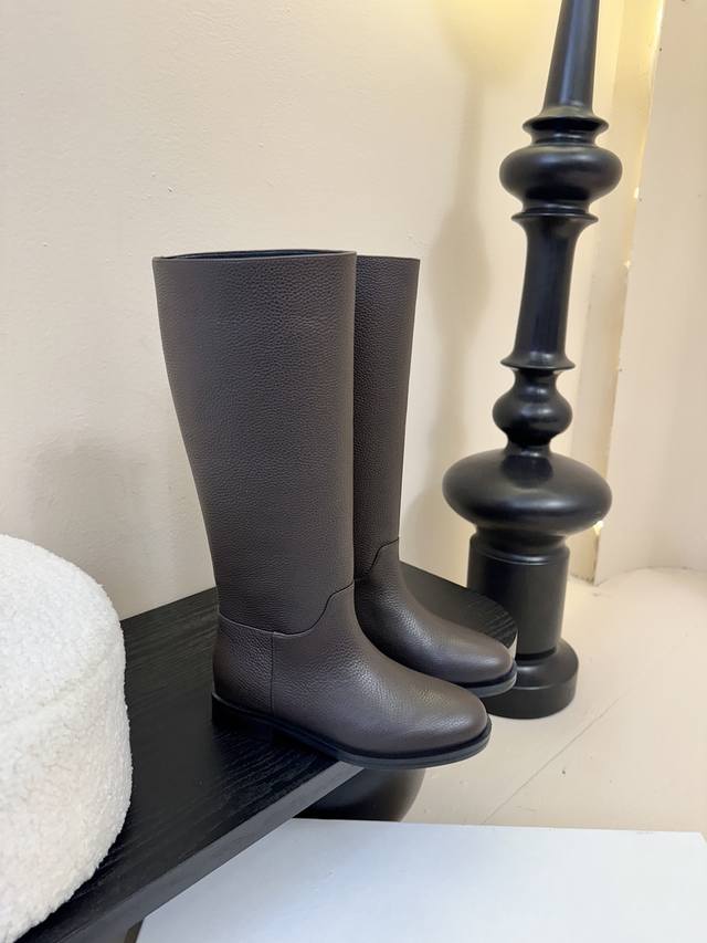 Khaite 25Ss new fall/winter simple lychee-grained round-toe flat-heeled knight boots, slip-on straight boots! Simple and versatile!