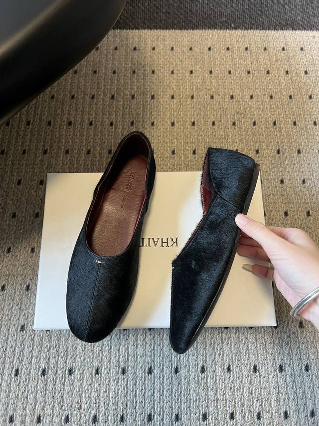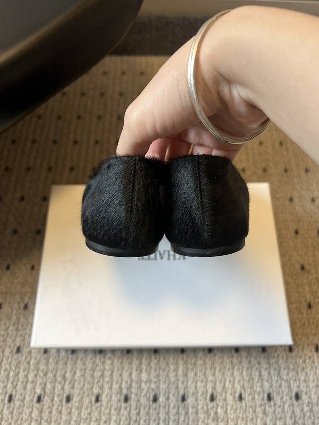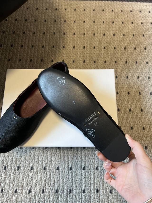 Khaite 26Ss Early Spring New Arrival Flat Shoes Casual Shoes DDD Minimalist solid color design, suitable for multiple occasions, in line with the brand's core focus on everyday practicality. Made with luxurious horsehair, the texture of which is natural and has a unique feel. The shoe's simple, unisex silhouette, combined with soft materials like horsehair and leather, reflects the brand's design philosophy of strength and softness. DDD Flat shoes offer everyday wearability, combining rare materials and exquisite craftsmanship to create a quietly luxurious piece, meeting the practical needs of commuting and leisure while possessing the quality of high-end fashion. Featuring a rounded oval toe design, distinct from sharp pointed toes, it balances comfort with a retro elegance, embodying the brand's signature soft architectural feel. DDD Upper: Horsehair Ddd Lining: Sheepskin Ddd Outsole: Italian genuine leather Ddd Height Increase: 1cm Ddd Size: 35-41, sizes 40 and 41 are custom-made and non-refundable DDD