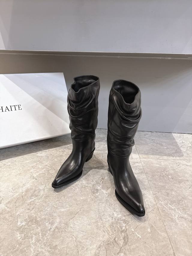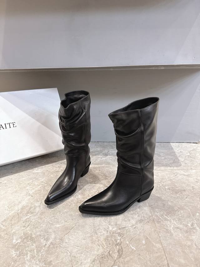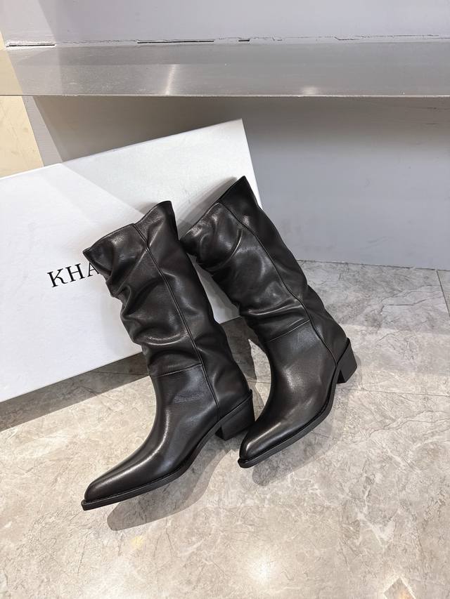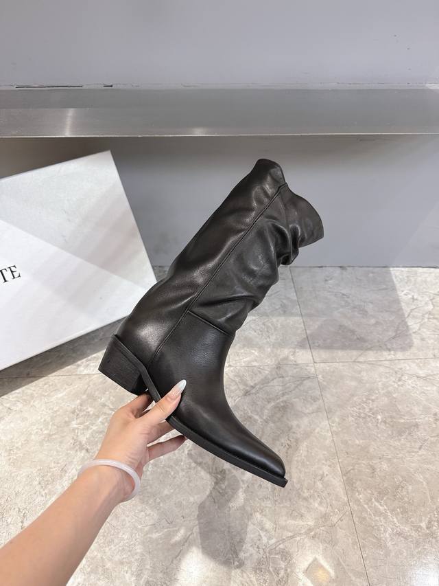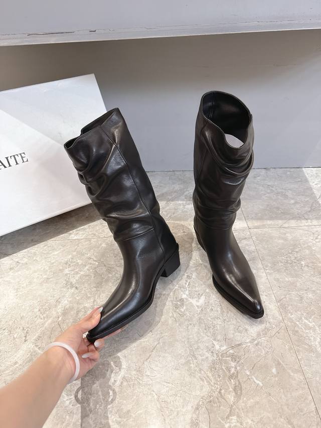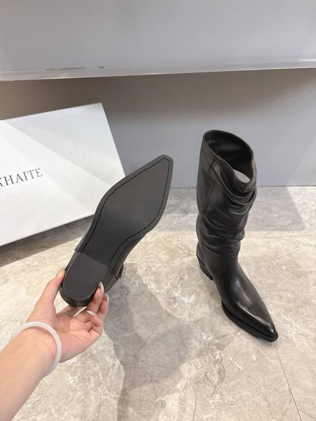 Khaite's hottest new autumn/winter arrivals! Instantly slimming when worn, these boots are irresistible for those with such flattering foot shapes! The ankle pleats are increasingly stylish, and the fashionable low heel is height-friendly, making walking a breeze. They pair perfectly with skirts, pants, suits, and shirts. So many praises! Just buy them without hesitation. They'll last a lifetime! Upper: Cowhide Lining: Sheepskin Outsole: Genuine Leather Size: 35-40, 40 (custom sizes available)