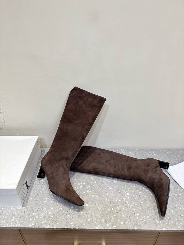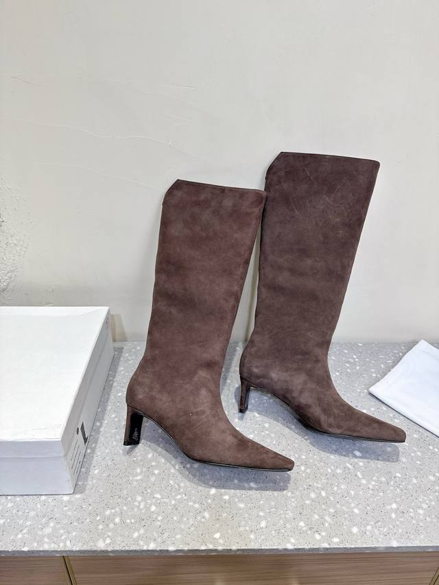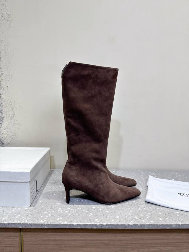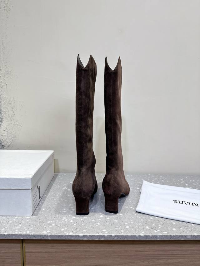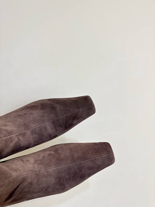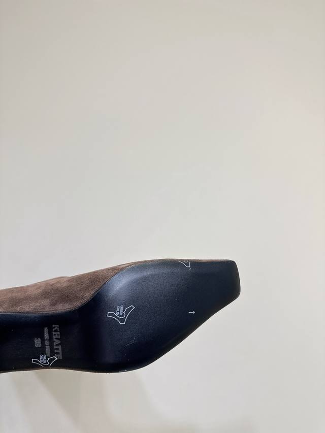 Khaite's new fall/winter high-heeled pointed-toe boots from the niche fashion brand 25Ss. The small square toe and kitten heel create a stylish look. The slightly angled cuffs create a fresh, stylish look that's a bit different from the usual. They're beautiful and easy to style. I love their laid-back French-European style, sleek and naturally comfortable. A fashionista's favorite! Upper: Made from genuine imported sheepskin. Lining: Sheepskin. Sole: Custom-made Italian leather outsole. Sizes: 35-39, 40, and 41. Made to order, no returns or exchanges.