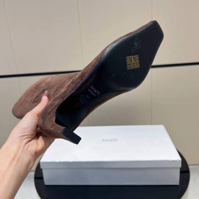 Khaite's niche fashion brand 25Vs' latest hit collection. These square-toed slip-on boots are original, one-to-one, and offer excellent comfort and support. They're full of personality and easily coordinate with any style. Fabric: Original custom cowhide leather. Lining: Original custom sheepskin leather. Footrest: Original custom sheepskin leather. Outsole: Imported genuine leather from Italy. Heel height: 6.5 cm. Packaging: Original full packaging. Sizes: 35-39, 40-41. Custom sizes are non-refundable. Colors: Updated on the official website.