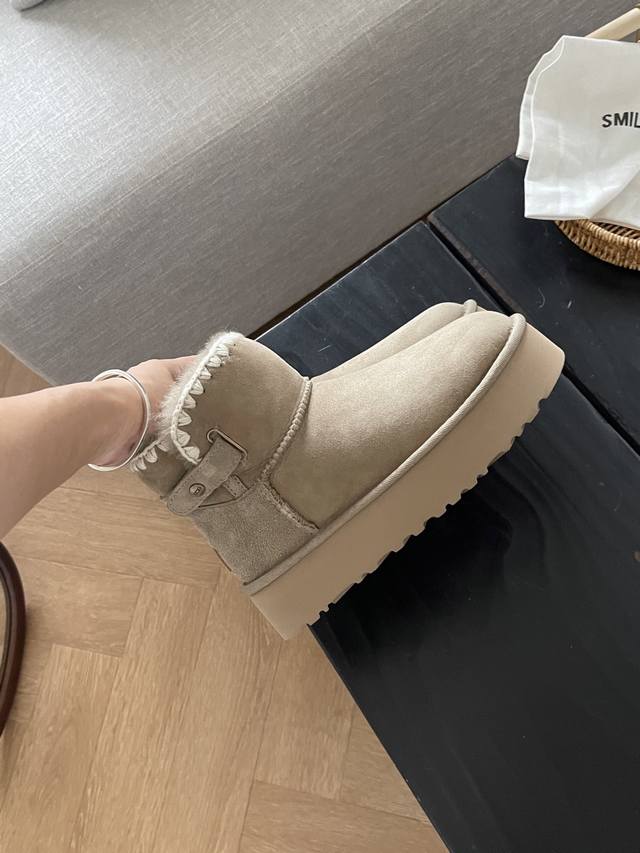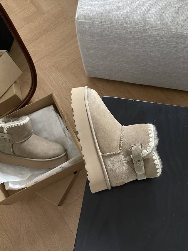 These are more than regular snow boots, featuring knitting and buckles