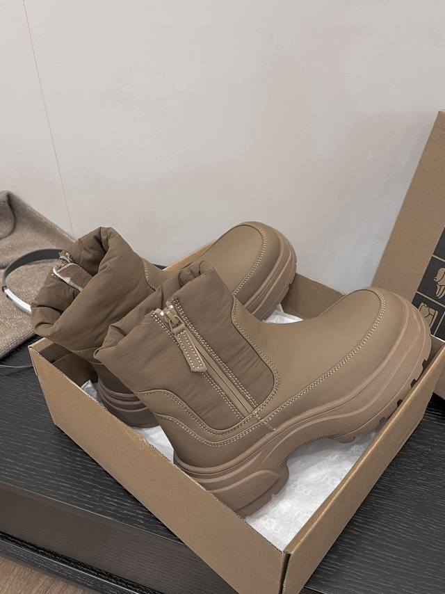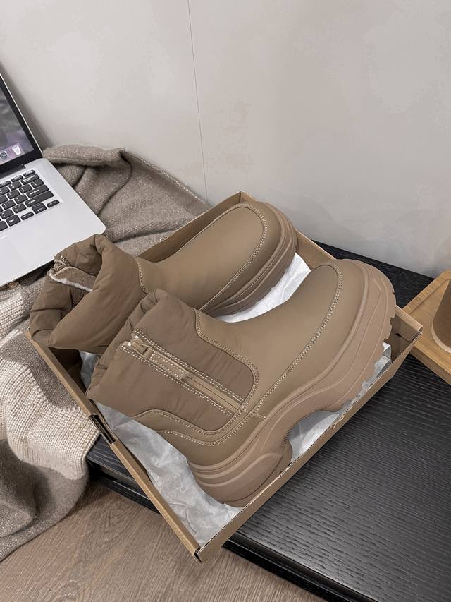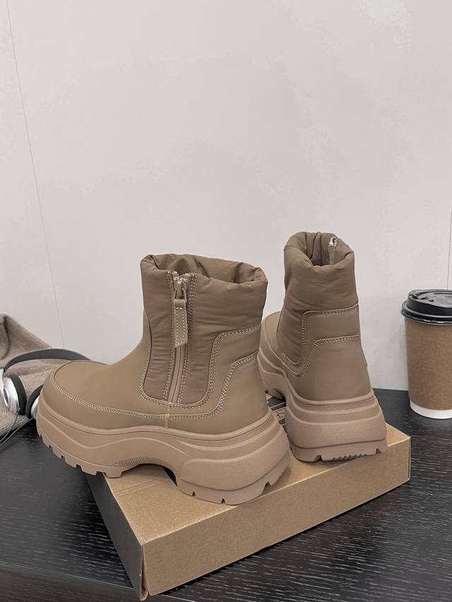 Korean Style Down Snow Boots Are you still wearing bulky snow boots? Why not try these super leg-lengthening and slimming down boots? They reinterpret the concept of down, with a bread-like texture. The upper is made of nylon, which is waterproof and windproof. The inner lining is made of Australian sheepskin, keeping your feet warm in the cold winter. The custom non-slip outsole is ultra-lightweight, making them feel weightless on your feet. DDD Size: 35-40 DDD