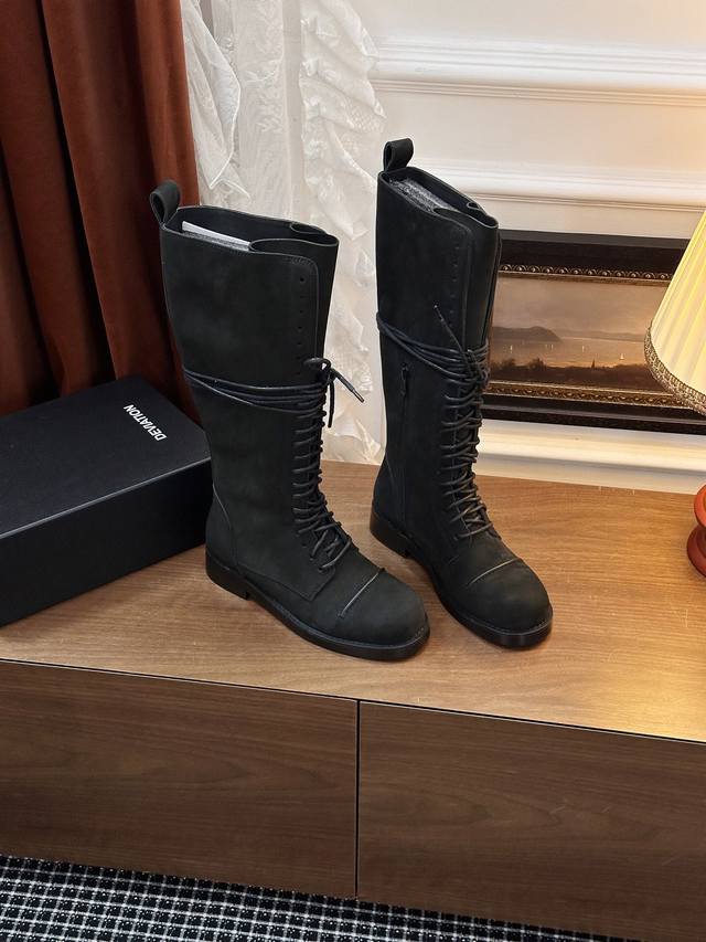 Lace-up knight boots, 100% ZP-quality, compared to Ann Dem. We've purchased all the Y-versions. We specialize in the entire Ann collection. After numerous adjustments and upgrades to the last and leather sole, we directly supply ZP-quality, fall/winter dual-use knight boots from the factory, guiding you in your pursuit of uniqueness. Crafted with time-honored craftsmanship, these boots embody freedom and confidence. Challenging tradition while infusing modern elements, these knight boots exude a unique allure. The dark Nappa calfskin upper exudes a rebellious and uncompromising aura. The clever combination of textured stitching and a rear zipper adds comfort and convenience. The detachable shaft adds a new DNA to fashion! One price, two experiences: the high-top is stylish and slimming, while the short-top is versatile and versatile! The comfortable shape and high-quality materials provide you with an unparalleled wearing experience. Whether it is a formal occasion or a daily street