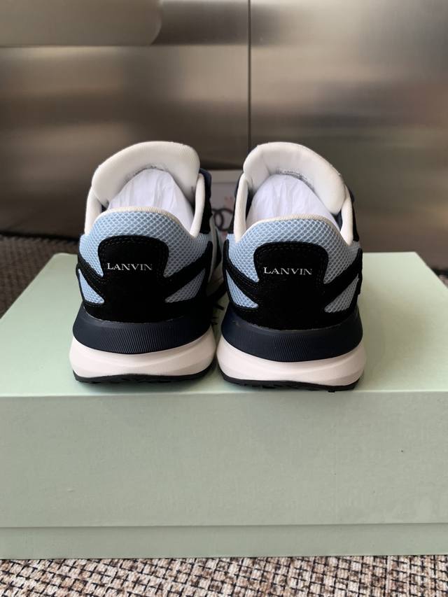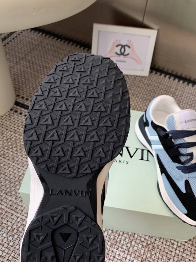 Original purchase, development and production. This unisex sneaker is lightweight and comfortable. The mesh design makes the upper lighter, so you don't have to worry about your feet getting stuffy. The shoes look fashionable with skirts and pants. The upper is decorated with Lanvin's classic J logo. The curved lines pay tribute to the circular elements of the Lanvin logo, showing the brand's craftsmanship. This shoe combines sports, fashion and craftsmanship.