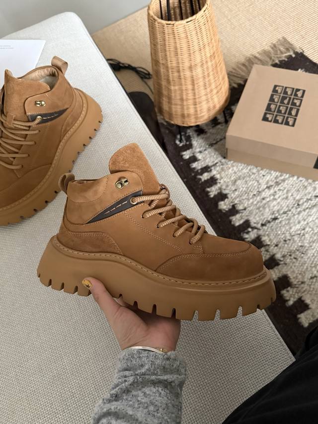 Large-toned work boots DDD A particularly casual and versatile work boot DDD Made of selected top-grain suede cowhide with a very high-end color scheme DDD Genuine wool lining, the first choice for trendy winter wear! DDD Size: 39 44 DDD