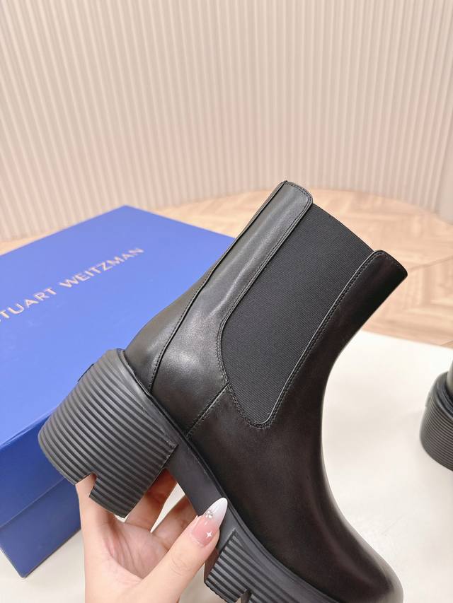 Latest Classic Top-Tier Autumn/Winter Boots DDD Chunky Heel Platform Chelsea Ankle Boots DDD Sw 5050 Soho Bootie Original Channel Goods Unstoppable! Featuring our popular Lift tire sole, these boots boast a bold and rugged design, showcasing fashionable charm. Lightweight and comfortable, they conform perfectly to the leg shape. DDD Upper: Calfskin with growth lines and pores smaller than any other leather, offering a baby-soft feel. The lining is made of mixed sheepskin. Original outsole, highly practical, lightweight, and soft. Heel height approximately 6.5cm. DDD Sizes: 35-40 [40 custom-made] DDD