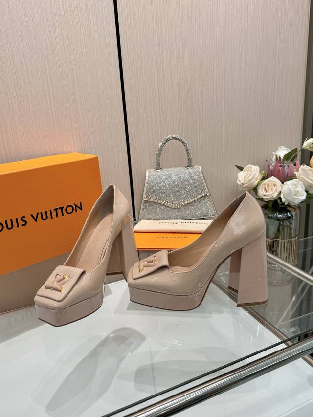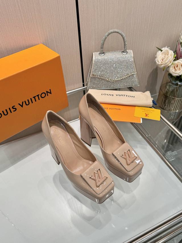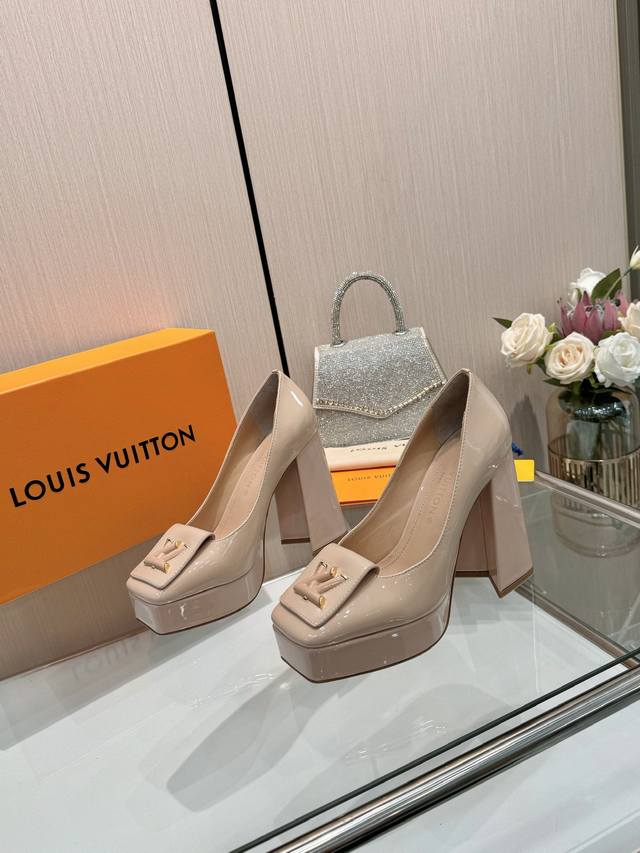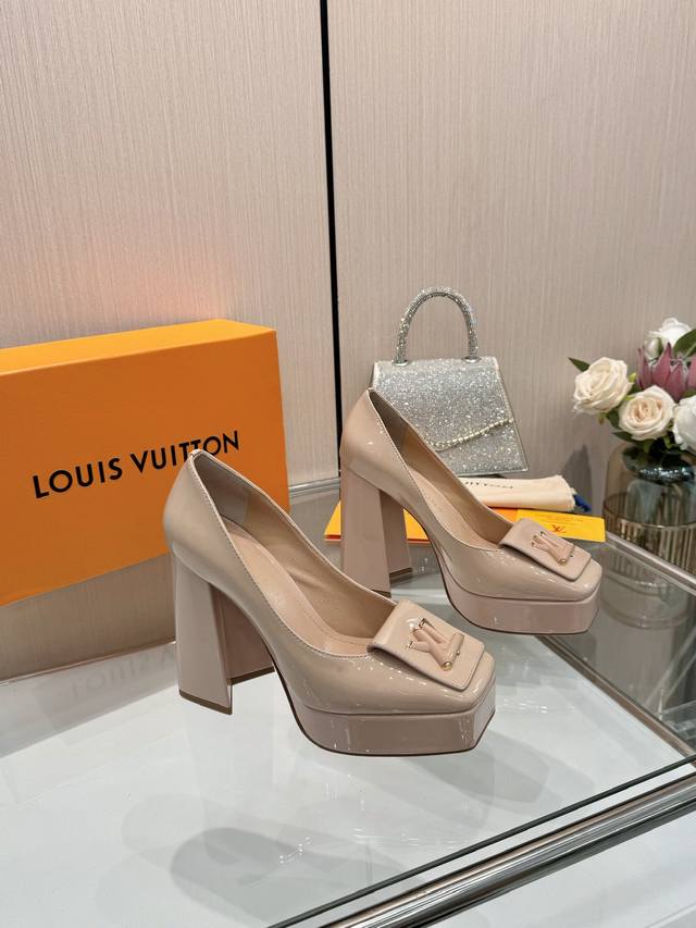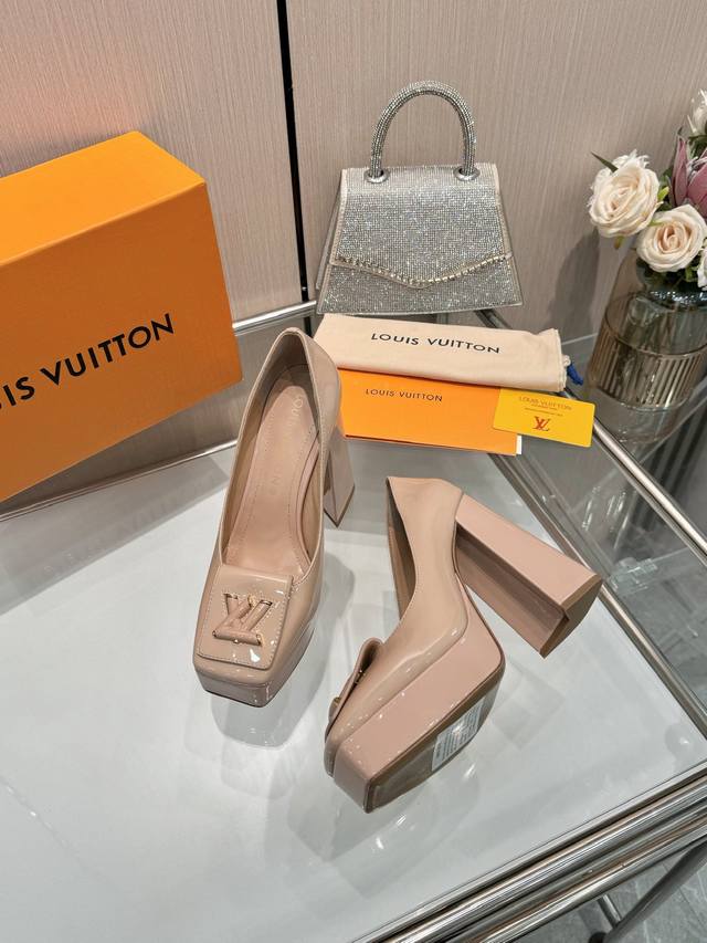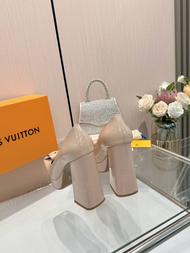 Latest exclusive runway style single shoes from L brand, factory wholesale: Perfect last + platform design, elegant temperament, comfortable to walk in, original molded last, perfect 1:1 shape, high-end quality, imported high-end fabric presents exquisite texture! Material: Classic monogram cowhide, imported patent leather denim. Lining: High-quality soft sheepskin. Insole: Imported goatskin. Custom-made A-grade high-density private mold outsole, luxurious packaging! 3cm platform + 12cm embroidered leather upper. Sizes: 35-40, 34, 40, 41 (custom orders are non-refundable).