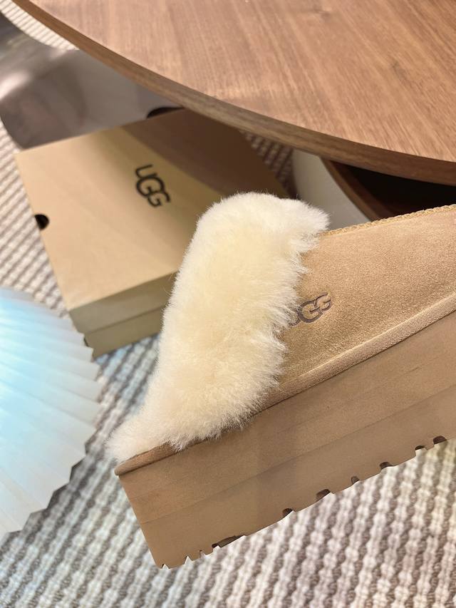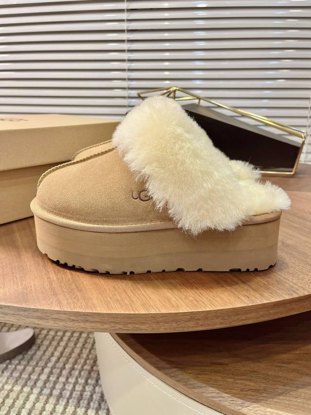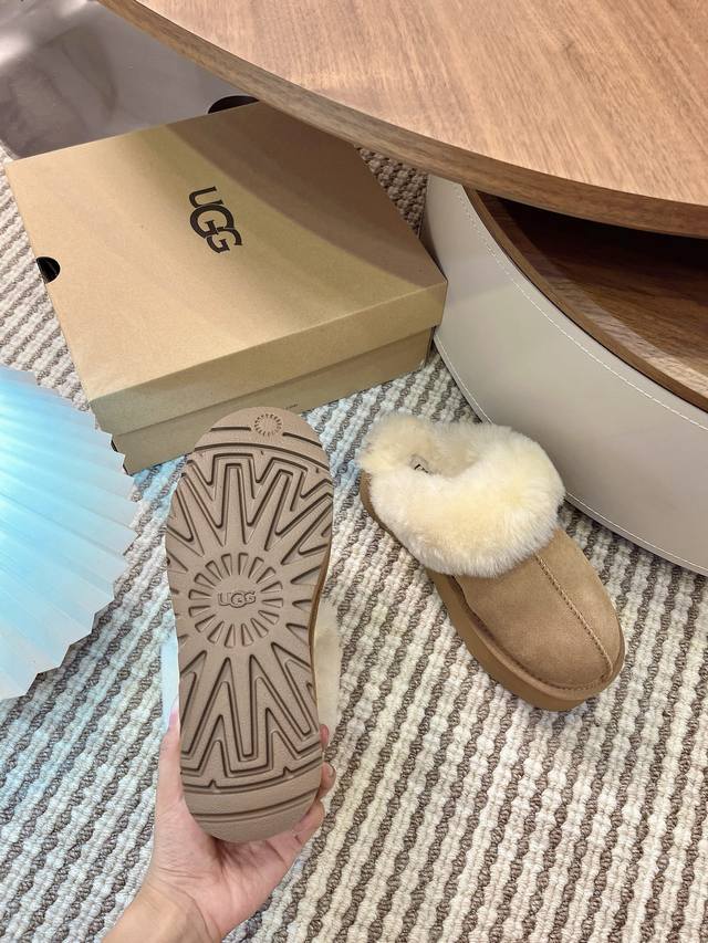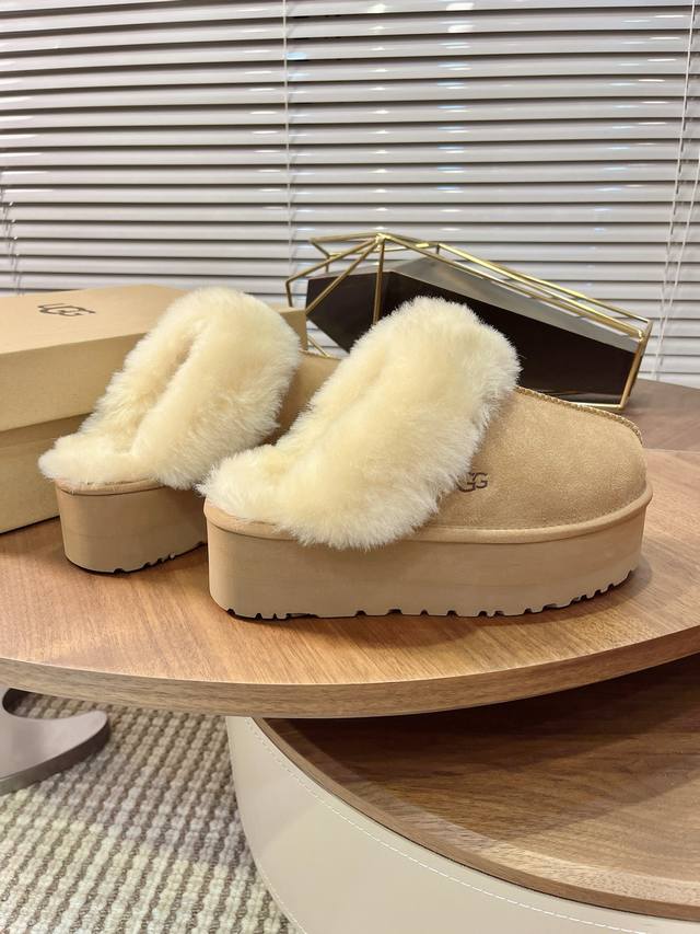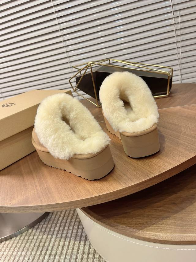 Casual classic flat comfortable home furry slippers, a favorite of celebrities and bloggers in spring and summer. ~ Eva platform sole, wool upper and insole. Colors: Gray, Black, Chestnut