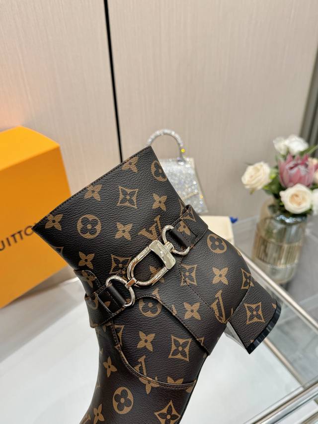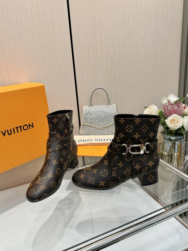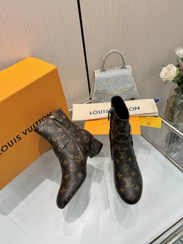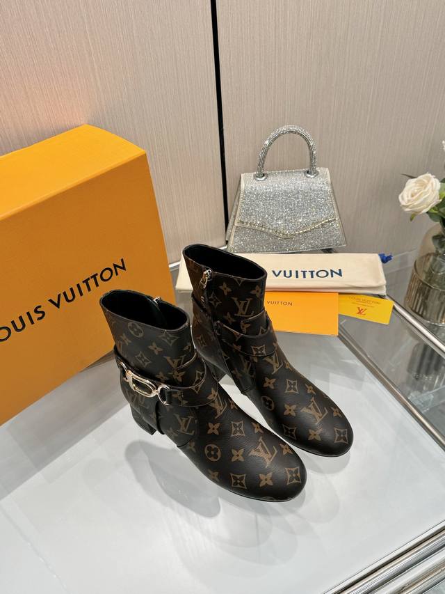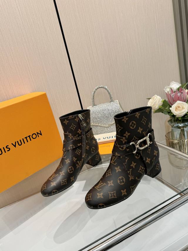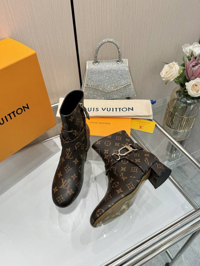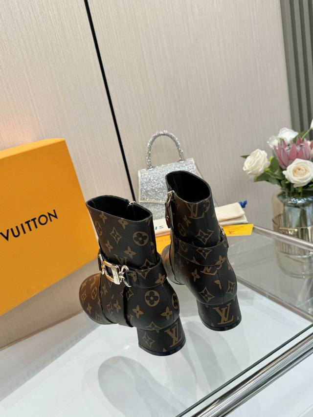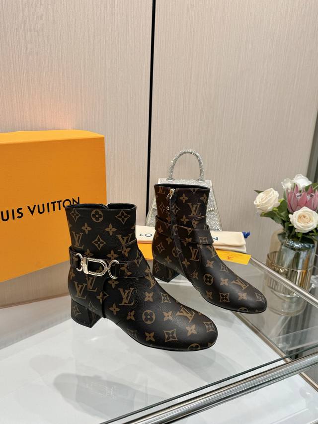 Latest L brand autumn/winter runway style ankle boots, factory direct wholesale: Perfect last + new element buckle, extremely intricate craftsmanship, comfortable flat design, no foot fatigue while walking, original molded last, ultimate 1:1 shape, high-end quality, imported high-end fabric presents exquisite texture! Material: Classic monogram denim, imported calfskin, imported patent leather. Lining: High-quality soft sheepskin lining. Insole: Imported goatskin. Custom-made A-grade high-density private mold outsole. 4cm leather heel. Sizes 35-40, 34, 40, 41 (custom orders are non-refundable).