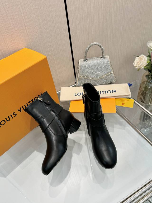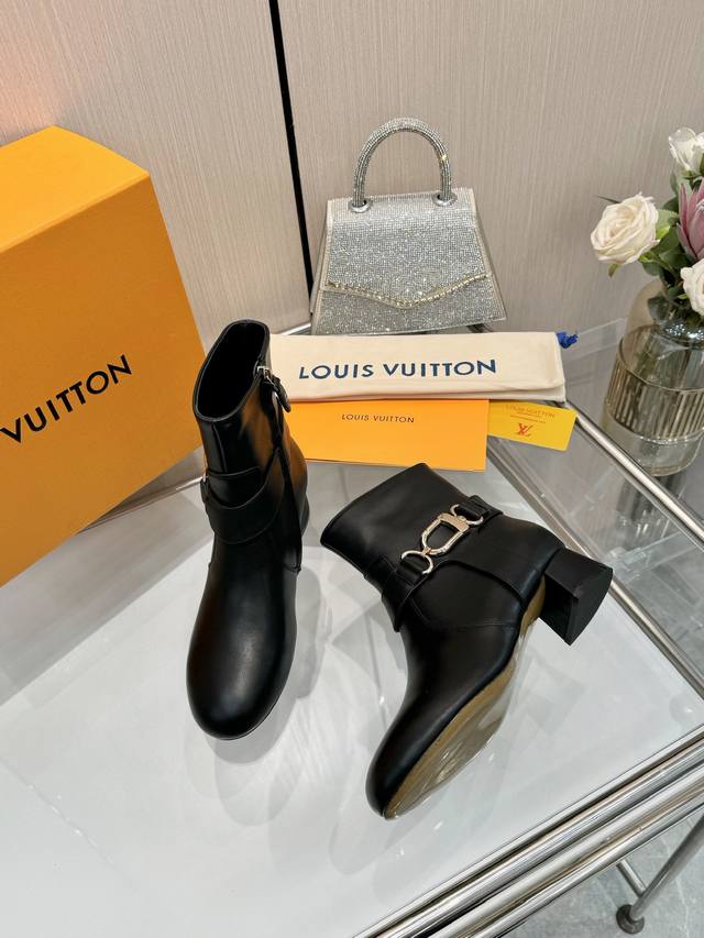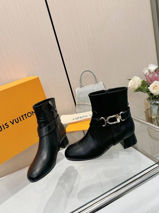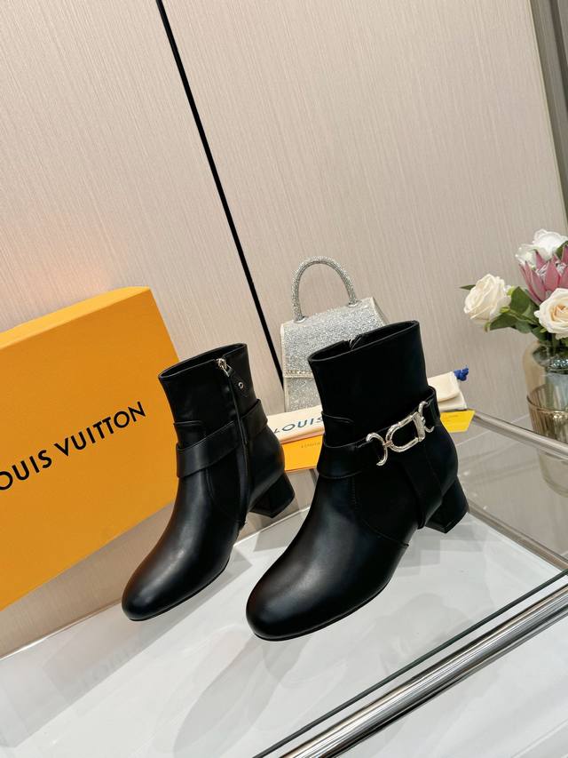 Latest L brand autumn/winter runway style ankle boots, factory direct wholesale: Perfect last + new element buckle, extremely intricate craftsmanship, comfortable flat design, no foot fatigue while walking, original molded last, ultimate 1:1 shape, high-end quality, imported high-end fabric presents exquisite texture! Material: Classic monogram denim, imported calfskin, imported patent leather. Lining: High-quality soft sheepskin lining. Insole: Imported goatskin. Custom-made A-grade high-density private mold outsole. 4cm leather heel. Sizes 35-40, 34, 40, 41 (custom orders are non-refundable).
