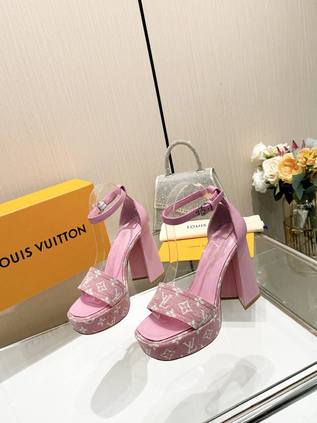 Latest L brand Paris runway sandals, exclusive style, factory direct wholesale: Perfect last + platform design, elegant temperament, comfortable to walk in, original molded last, perfect 1:1 shape, high-end quality, imported high-end fabric presents exquisite texture! Material: Classic monogram imported lambskin denim; Lining: High-quality soft lambskin; Insole: Imported goatskin; Custom-made A-grade high-density private mold outsole, luxurious packaging! 3.5cm platform + 12cm leather heel; Sizes: 35-40, 34, 40, 41 (custom orders are non-refundable/non-exchangeable).