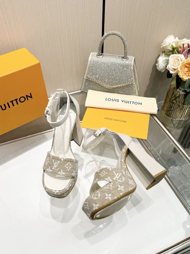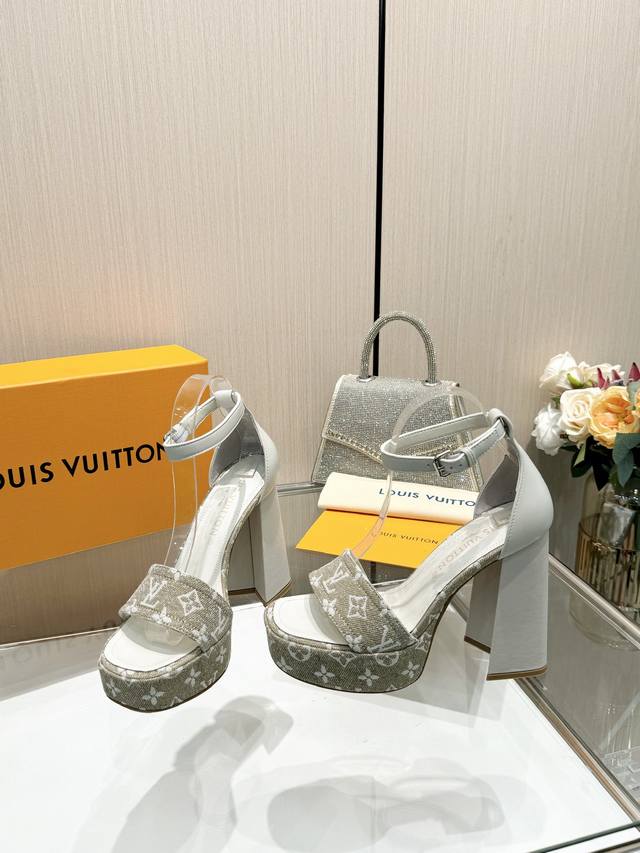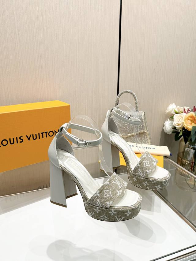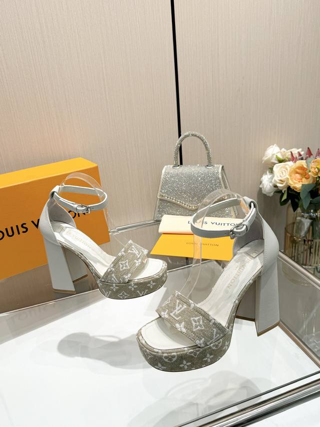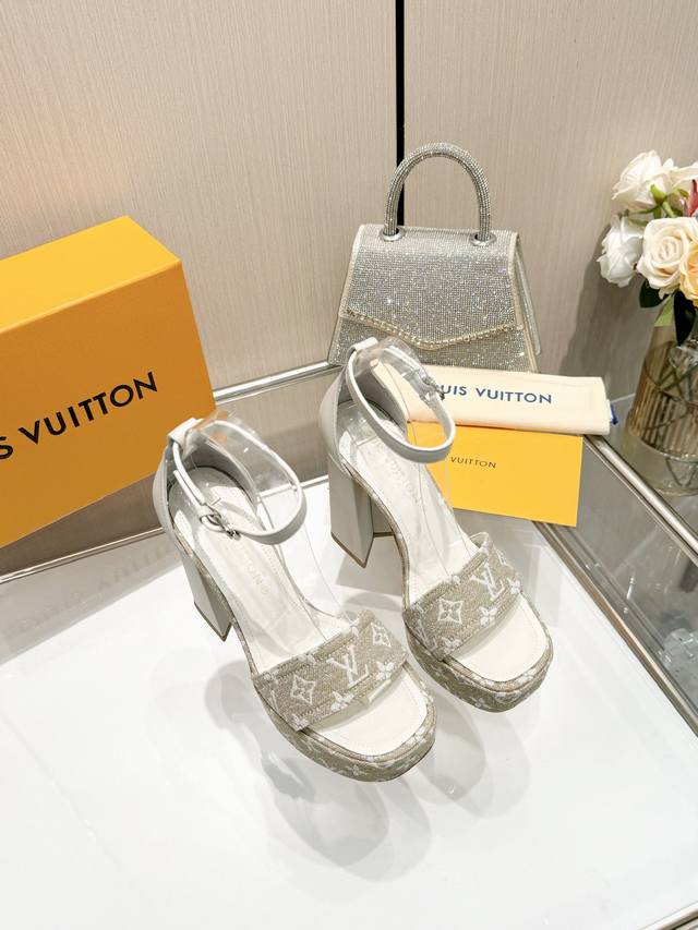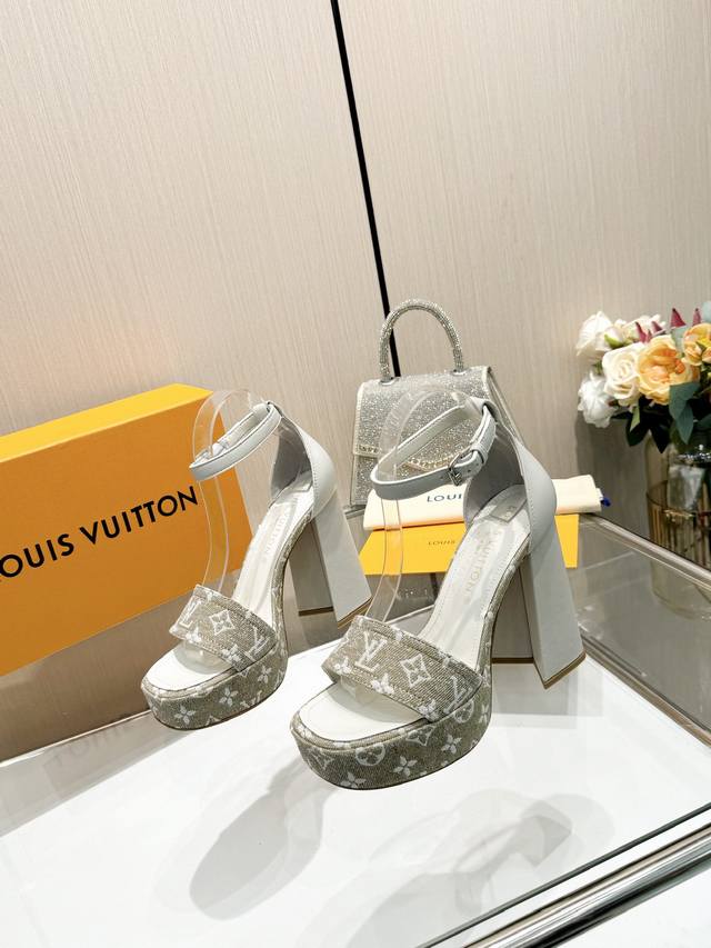 Latest L brand Paris runway sandals, exclusive style, factory direct wholesale: Perfect last + platform design, elegant temperament, comfortable to walk in, original molded last, perfect 1:1 shape, high-end quality, imported high-end fabric presents exquisite texture! Material: Classic monogram imported lambskin denim; Lining: High-quality soft lambskin; Insole: Imported goatskin; Custom-made A-grade high-density private mold outsole, luxurious packaging! 3.5cm platform + 12cm leather heel; Sizes: 35-40, 34, 40, 41 (custom orders are non-refundable/non-exchangeable).