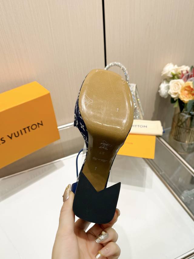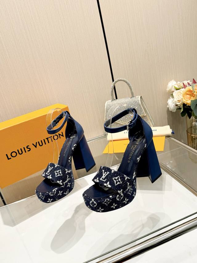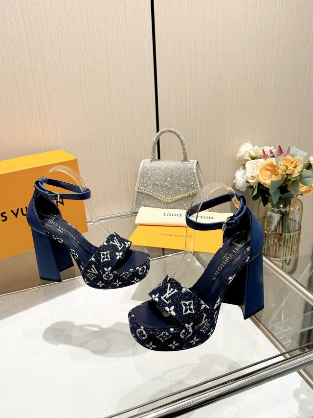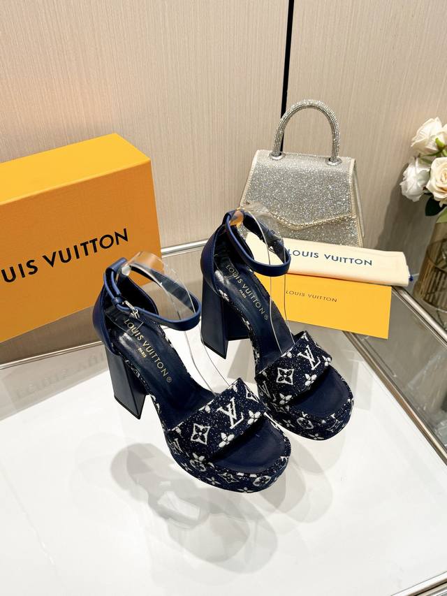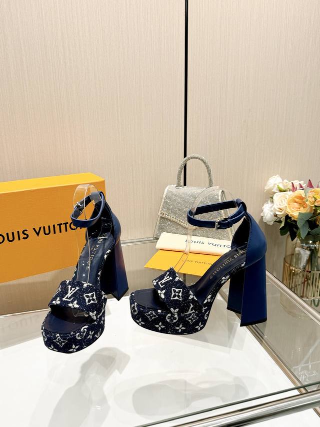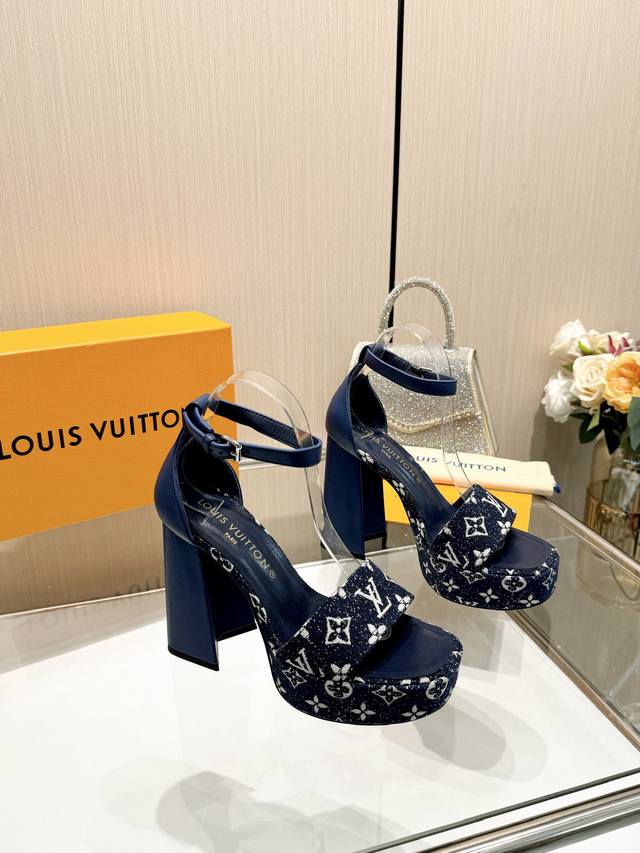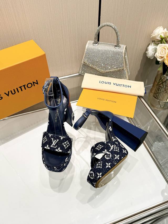 Latest L brand Paris runway sandals, exclusive style, factory direct wholesale: Perfect last + platform design, elegant temperament, comfortable to walk in, original molded last, perfect 1:1 shape, high-end quality, imported high-end fabric presents exquisite texture! Material: Classic monogram imported lambskin denim; Lining: High-quality soft lambskin; Insole: Imported goatskin; Custom-made A-grade high-density private mold outsole, luxurious packaging! 3.5cm platform + 12cm leather heel; Sizes: 35-40, 34, 40, 41 (custom orders are non-refundable/non-exchangeable).