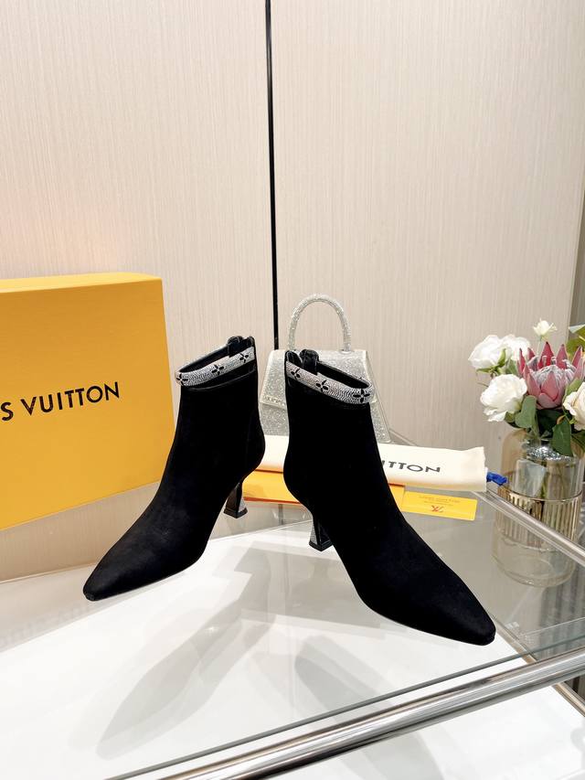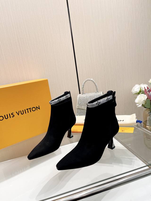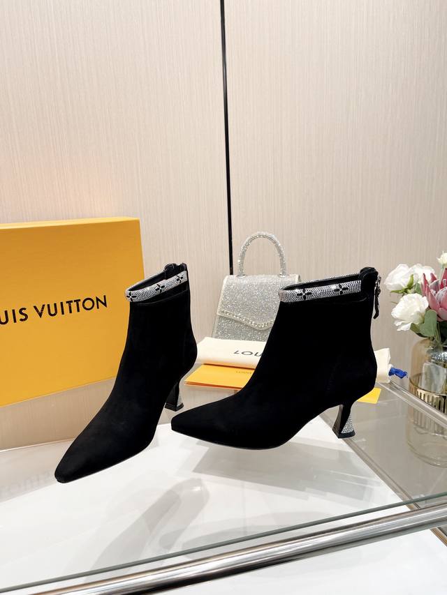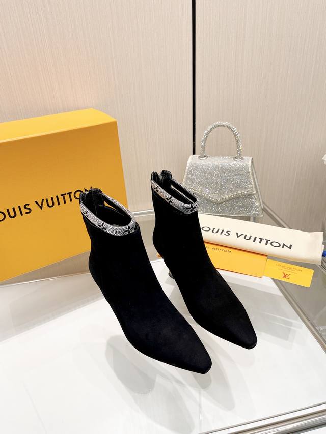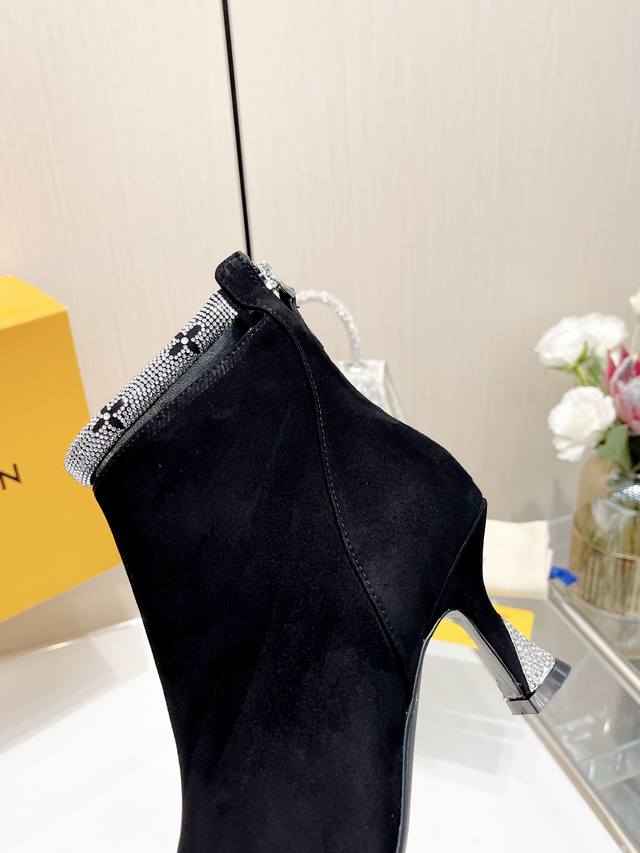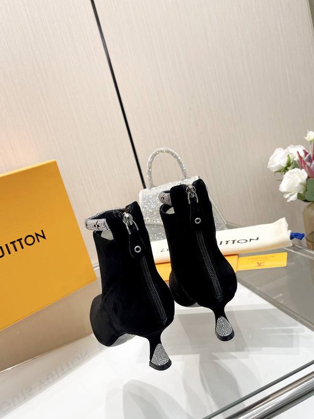 Latest L brand Paris runway style 6-inch boots, exclusive style updated simultaneously, factory direct wholesale: Perfect last + heel buckle design, hot-stamped rhinestone design, full of femininity, noble temperament, original mold last, ultimate 1:1 shape, high-end quality, imported high-end fabric presents exquisite texture!