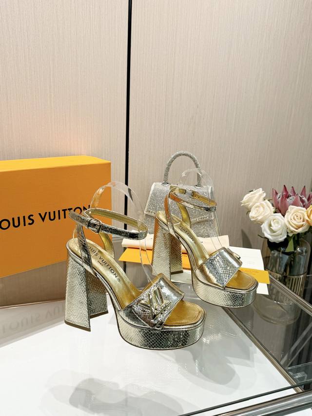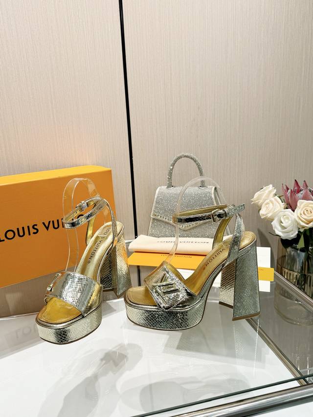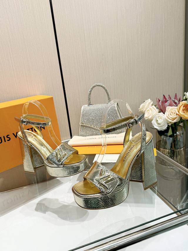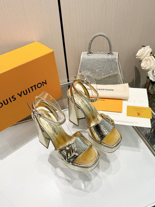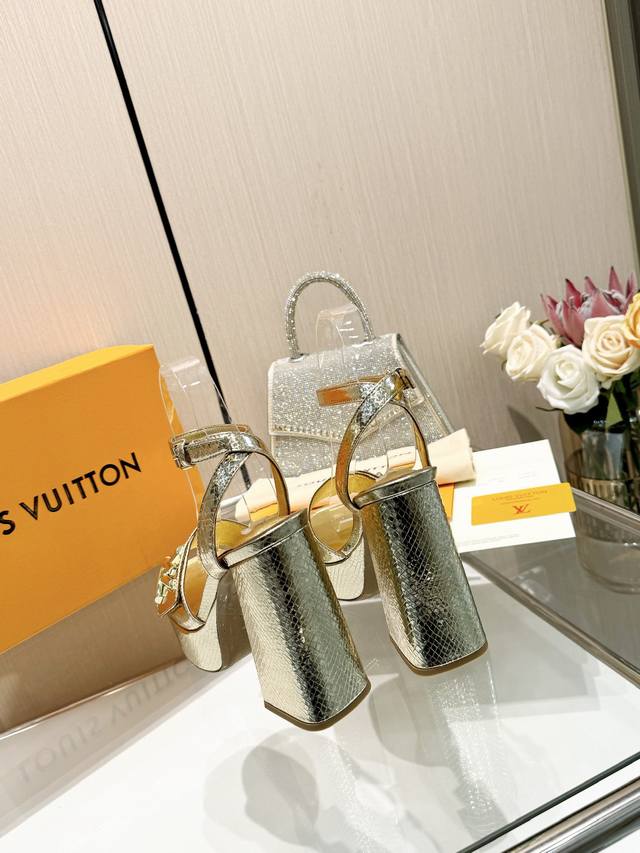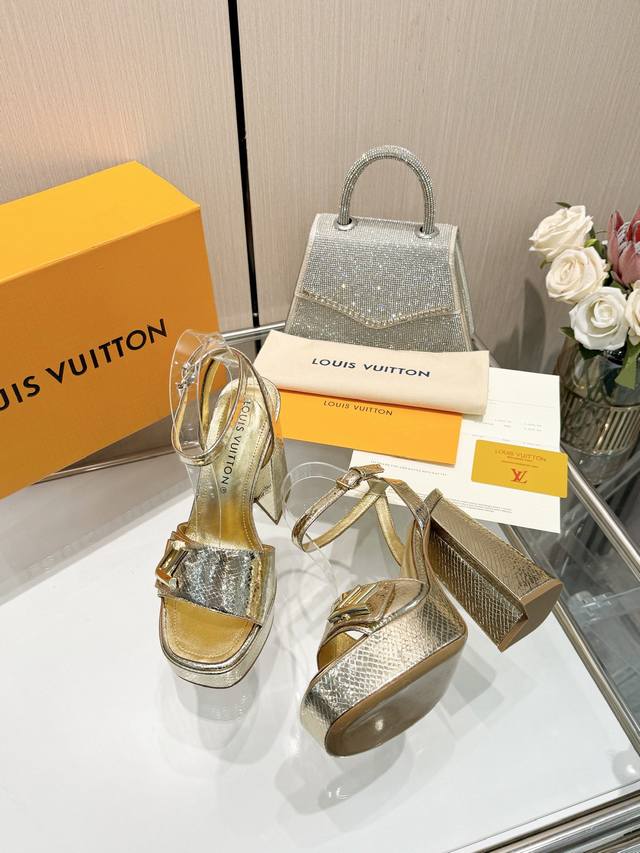 Latest L brand runway sandals, updated simultaneously with the official website series, factory direct wholesale: Perfect last + platform design, elegant temperament, comfortable to walk in, original molded last, perfect 1:1 shape, high-end quality, imported high-end fabric presents exquisite texture! Material: Classic monogram snakeskin imported patent leather; Lining: High-quality soft sheepskin; Insole: Imported goatskin; Custom-made A-grade high-density private mold outsole, luxurious packaging! 3.5cm platform + 12cm leather heel; Sizes: 35-40, 34, 40, 41 (custom orders are non-refundable).