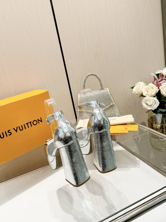 Latest L brand runway sandals, updated synchronously with the official website series, factory direct wholesale: Perfect last + platform design, elegant temperament, comfortable to walk in, original molded last, perfect 1:1 shape, high-end quality, imported high-end fabric presents exquisite texture! Material: Classic monogram snakeskin imported patent leather denim. Lining: High-quality soft sheepskin lining. Insole: Imported goatskin. Custom-made A-grade high-density private mold outsole, luxurious packaging! 3cm platform + 12cm embroidered leather heel. Sizes: 35-40, 34, 40, 41 (custom orders are non-refundable).