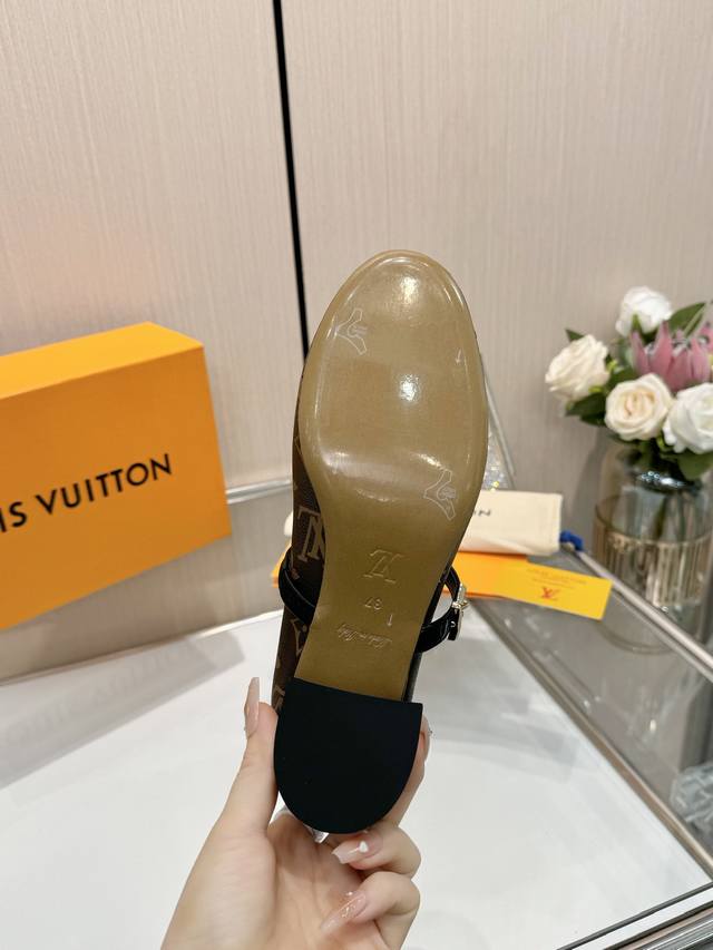 Latest L brand runway style all-season shoes, updated simultaneously with physical stores, factory direct wholesale: Perfect last + new element buckles, strap edge painting, extremely intricate craftsmanship, comfortable flat design, no foot fatigue when walking, original mold last, ultimate 1:1 shape, high-end quality, imported high-end fabric presents exquisite texture! Material: Classic monogram denim, imported lambskin, imported patent leather. Lining: High-quality soft lambskin lining. Insole: Imported goatskin. Custom-made A-grade high-density private mold outsole. 4cm leather heel. Sizes 35-40, 34, 40, 41 (custom orders are non-refundable).