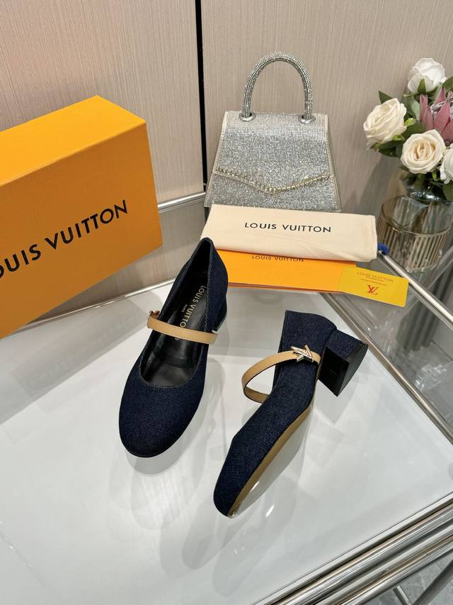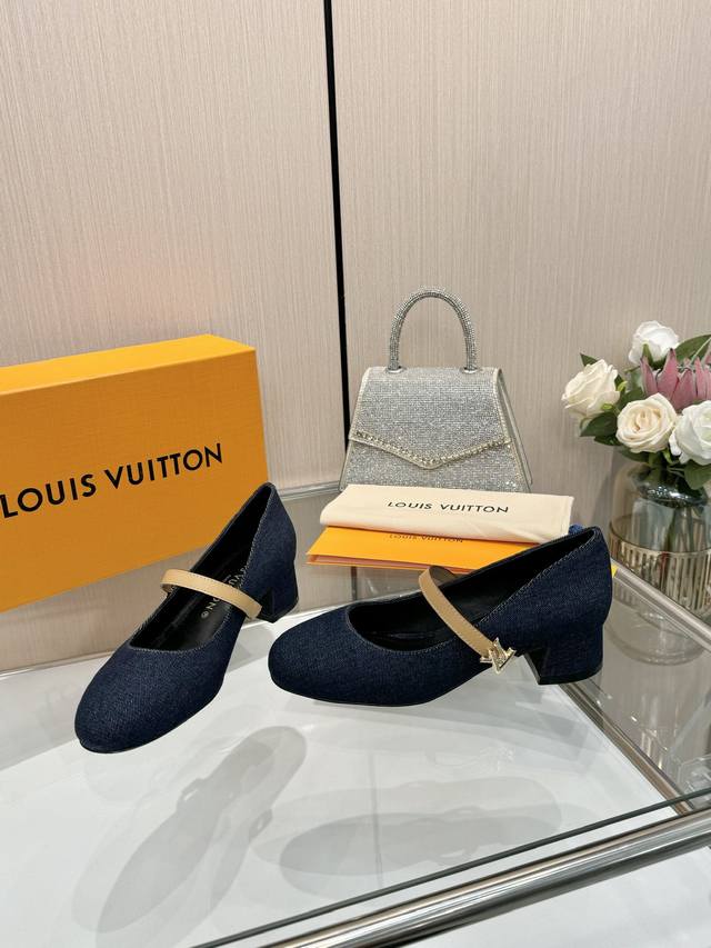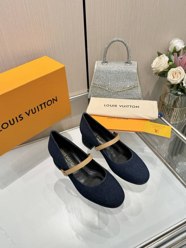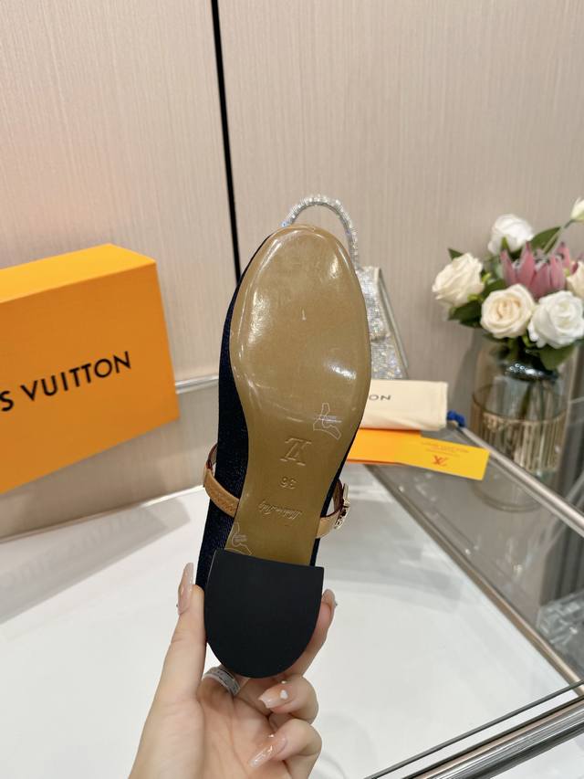 Latest L brand runway style all-season shoes, updated simultaneously with physical stores, factory direct wholesale: Perfect last + new element buckles, strap edge painting, extremely intricate craftsmanship, comfortable flat design, no foot fatigue when walking, original mold last, ultimate 1:1 shape, high-end quality, imported high-end fabric presents exquisite texture! Material: Classic monogram denim, imported lambskin, imported patent leather. Lining: High-quality soft lambskin lining. Insole: Imported goatskin. Custom-made A-grade high-density private mold outsole. 4cm leather heel. Sizes 35-40, 34, 40, 41 (custom orders are non-refundable).