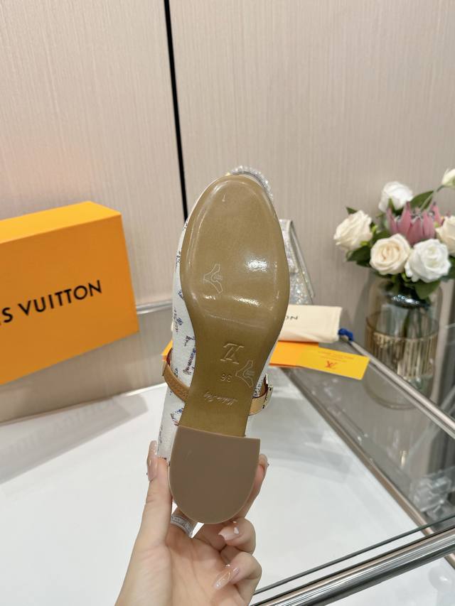 Latest L brand runway style all-season shoes, updated simultaneously with physical stores, factory direct wholesale: Perfect last + new element buckles, strap edge painting, extremely intricate craftsmanship, comfortable flat design, no foot fatigue when walking, original mold last, ultimate 1:1 shape, high-end quality, imported high-end fabric presents exquisite texture! Material: Classic monogram denim, imported lambskin, imported patent leather. Lining: High-quality soft lambskin lining. Insole: Imported goatskin. Custom-made A-grade high-density private mold outsole. 4cm leather heel. Sizes 35-40, 34, 40, 41 (custom orders are non-refundable).