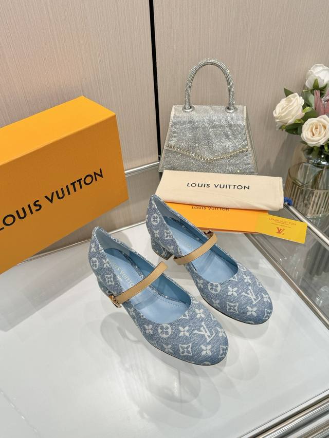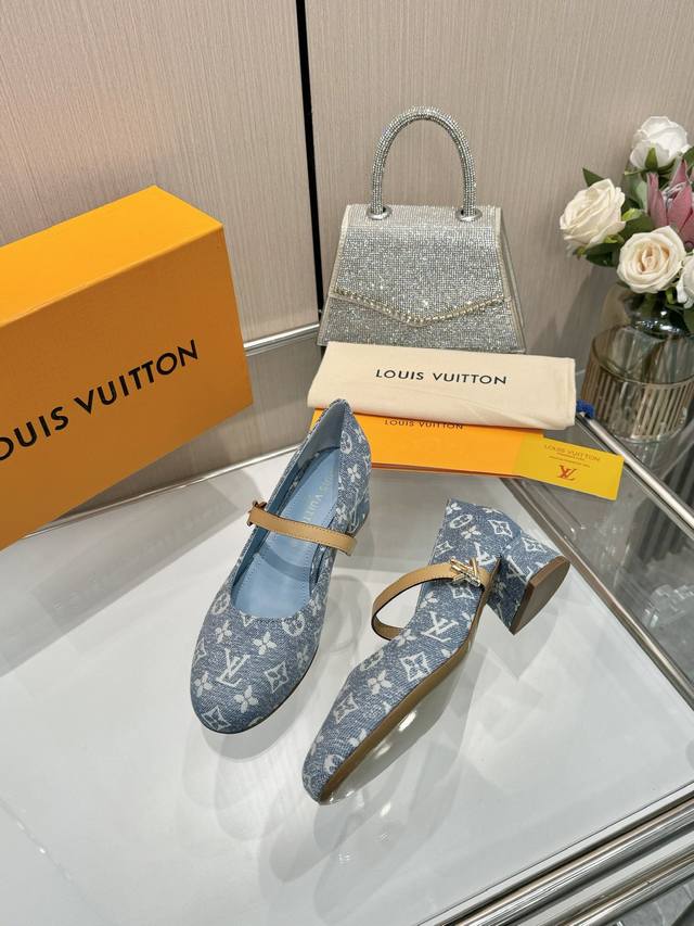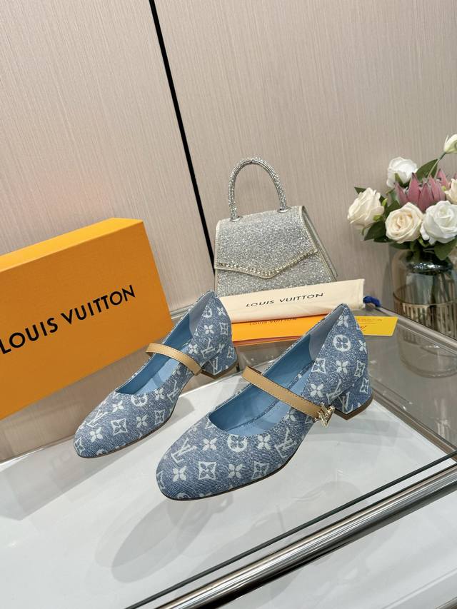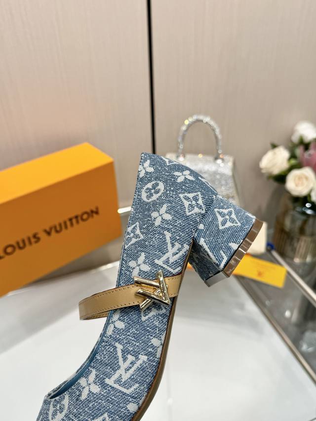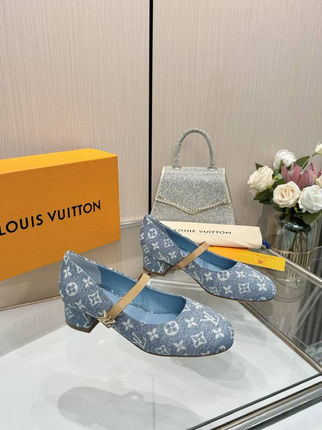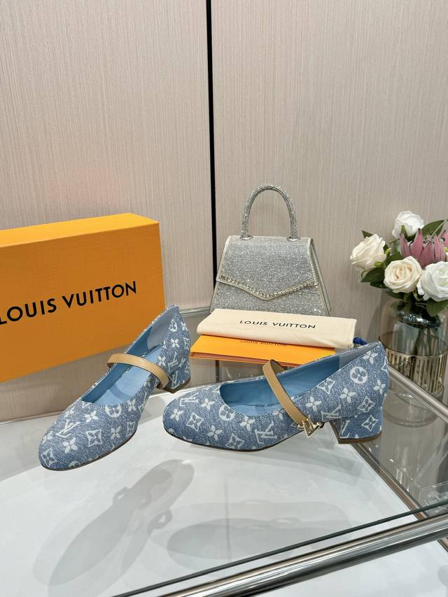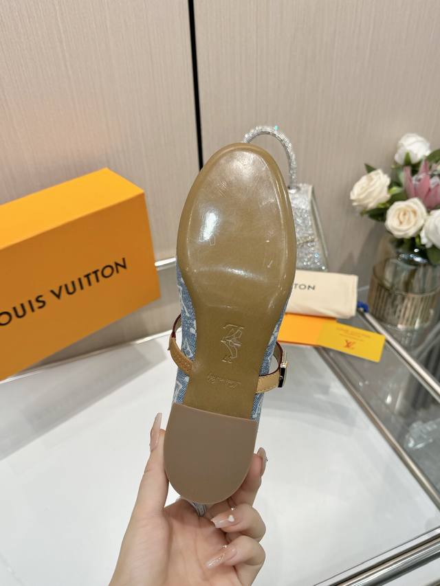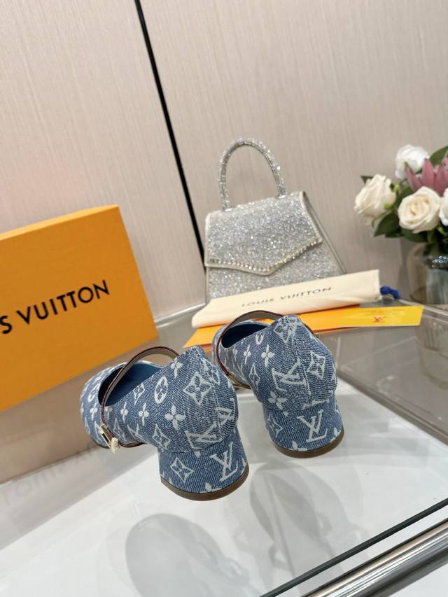 Latest L brand runway style all-season shoes, updated simultaneously with physical stores, factory direct wholesale: Perfect last + new element buckles, strap edge painting, extremely intricate craftsmanship, comfortable flat design, no foot fatigue when walking, original mold last, ultimate 1:1 shape, high-end quality, imported high-end fabric presents exquisite texture! Material: Classic monogram denim, imported lambskin, imported patent leather. Lining: High-quality soft lambskin lining. Insole: Imported goatskin. Custom-made A-grade high-density private mold outsole. 4cm leather heel. Sizes 35-40, 34, 40, 41 (custom orders are non-refundable).
