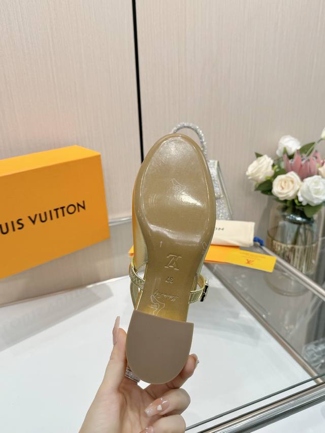 Latest L brand runway style open-back shoes, updated simultaneously with physical stores, factory direct wholesale: Perfect last + new element buckles, strap edge painting, extremely intricate craftsmanship, comfortable flat design, no foot fatigue when walking, original mold last, ultimate 1:1 shape, high-end quality, imported high-end fabric presents exquisite texture! Material: Classic monogram denim, imported lambskin, imported patent leather. Lining: High-quality soft lambskin lining. Insole: Imported goatskin. Custom-made A-grade high-density private mold outsole. 4cm leather heel. Sizes 35-40, 34, 40, 41 (custom orders are non-refundable).