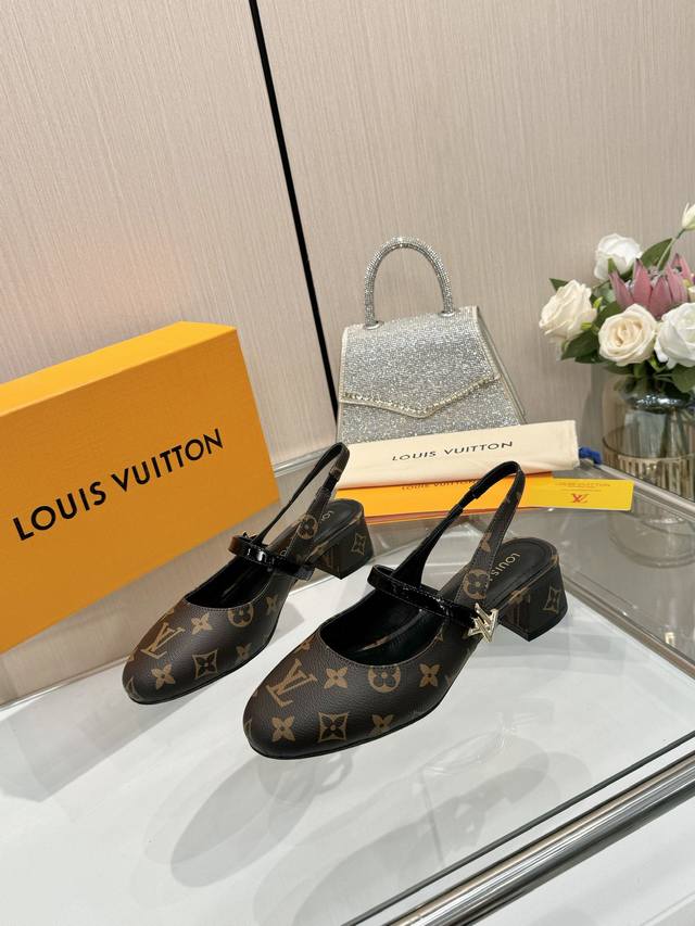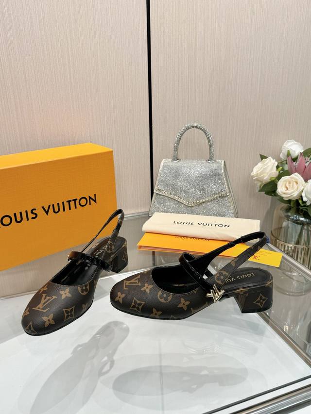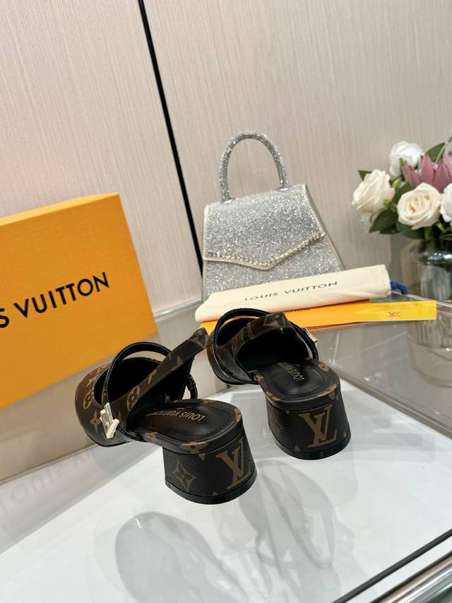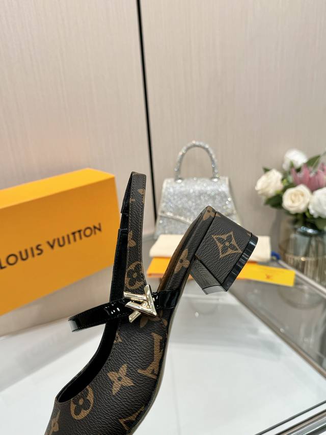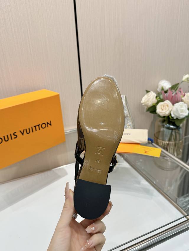 Latest L brand runway style open-back shoes, updated simultaneously with physical stores, factory direct wholesale: Perfect last + new element buckles, strap edge painting, extremely intricate craftsmanship, comfortable flat design, no foot fatigue when walking, original mold last, ultimate 1:1 shape, high-end quality, imported high-end fabric presents exquisite texture! Material: Classic monogram denim, imported lambskin, imported patent leather. Lining: High-quality soft lambskin lining. Insole: Imported goatskin. Custom-made A-grade high-density private mold outsole. 4cm leather heel. Sizes 35-40, 34, 40, 41 (custom orders are non-refundable).