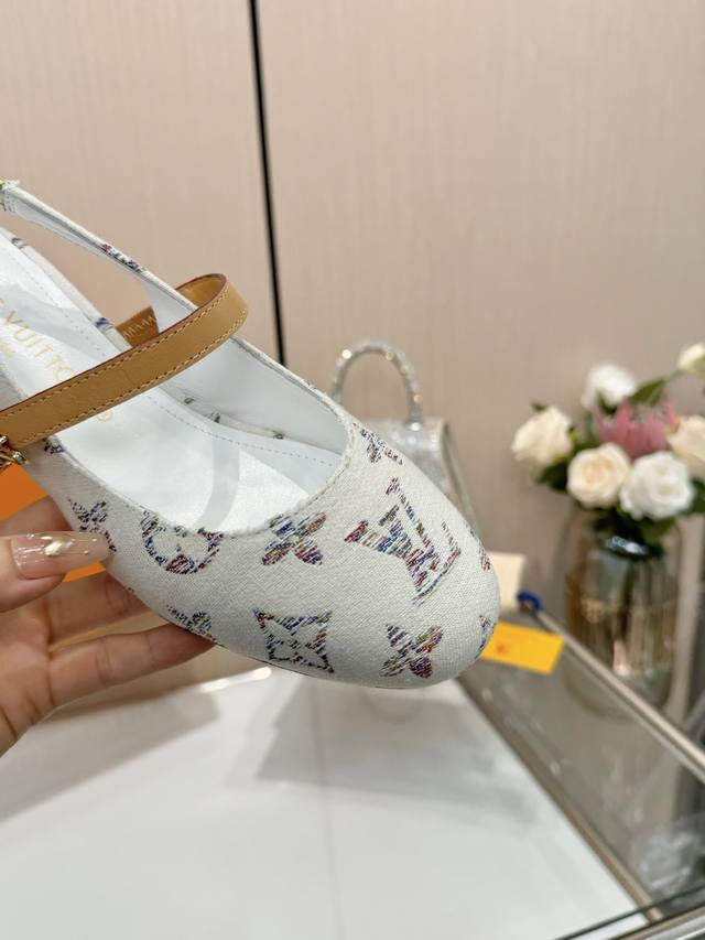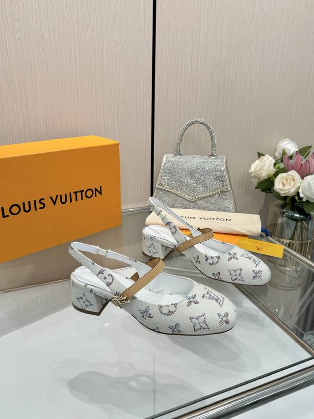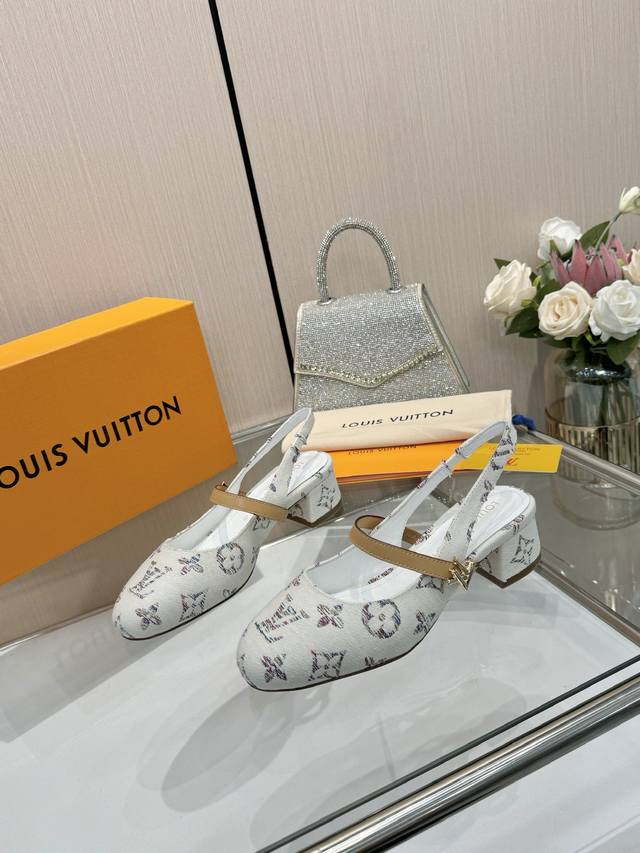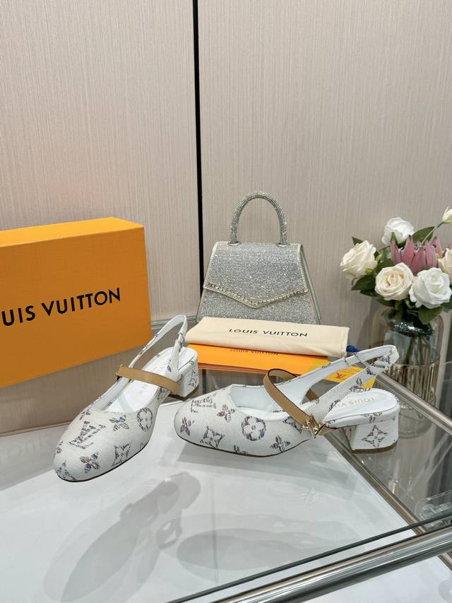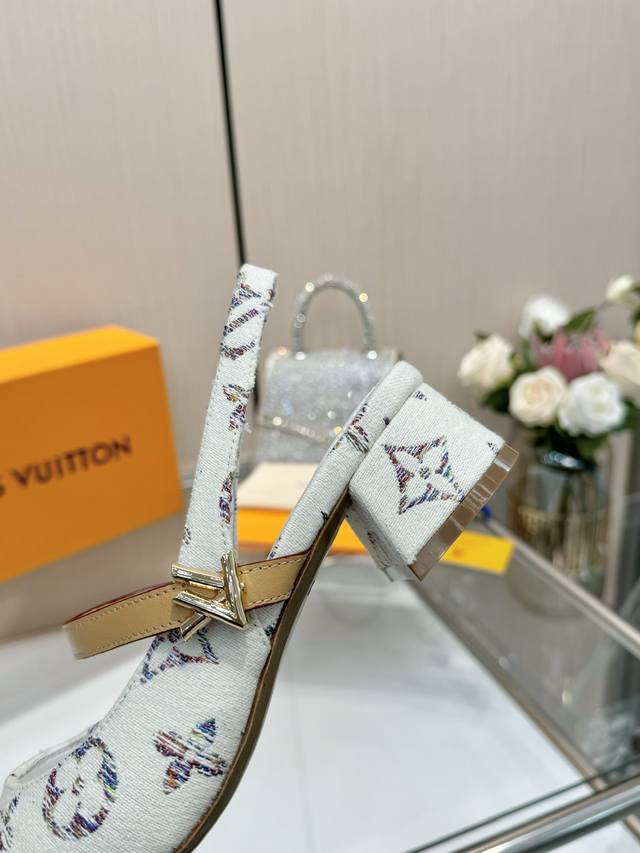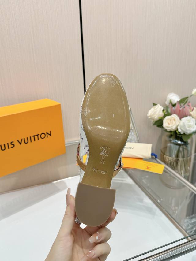 Latest L brand runway style open-back shoes, updated simultaneously with physical stores, factory direct wholesale: Perfect last + new element buckles, strap edge painting, extremely intricate craftsmanship, comfortable flat design, no foot fatigue when walking, original mold last, ultimate 1:1 shape, high-end quality, imported high-end fabric presents exquisite texture! Material: Classic monogram denim, imported lambskin, imported patent leather. Lining: High-quality soft lambskin lining. Insole: Imported goatskin. Custom-made A-grade high-density private mold outsole. 4cm leather heel. Sizes 35-40, 34, 40, 41 (custom orders are non-refundable).