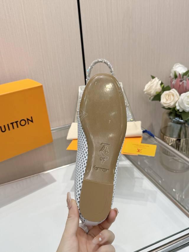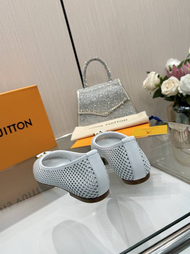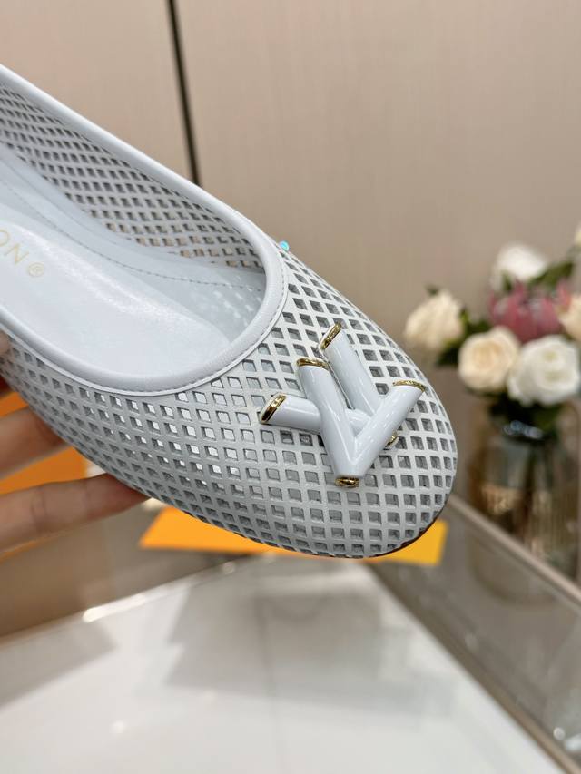 Latest L-brand runway style flat hollow-out shoes, updated simultaneously with physical series, factory direct wholesale: Perfect last + electroplated buckles, collar edging, full upper perforation, complex craftsmanship, comfortable flat design, no foot fatigue, original molded last, perfect 1:1 shape, high-end quality, imported high-end fabric presents exquisite texture! Material: Imported calfskin patent leather; Lining: High-quality soft sheepskin; Insole: Imported goatskin; Custom-made A-grade high-density private mold outsole; Sizes 35-40, 34, 40, 41 (custom orders are non-refundable).